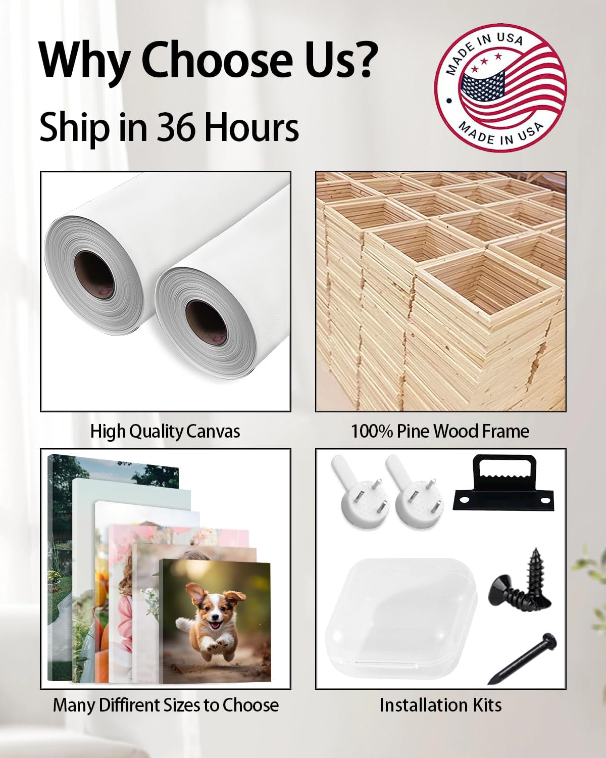 - 【Made in USA】:Our canvas art wall decor are made in the USA.We are committed to fast manufacture of your precious canvas prints, ensuring satisfaction for every home decor project or celebration