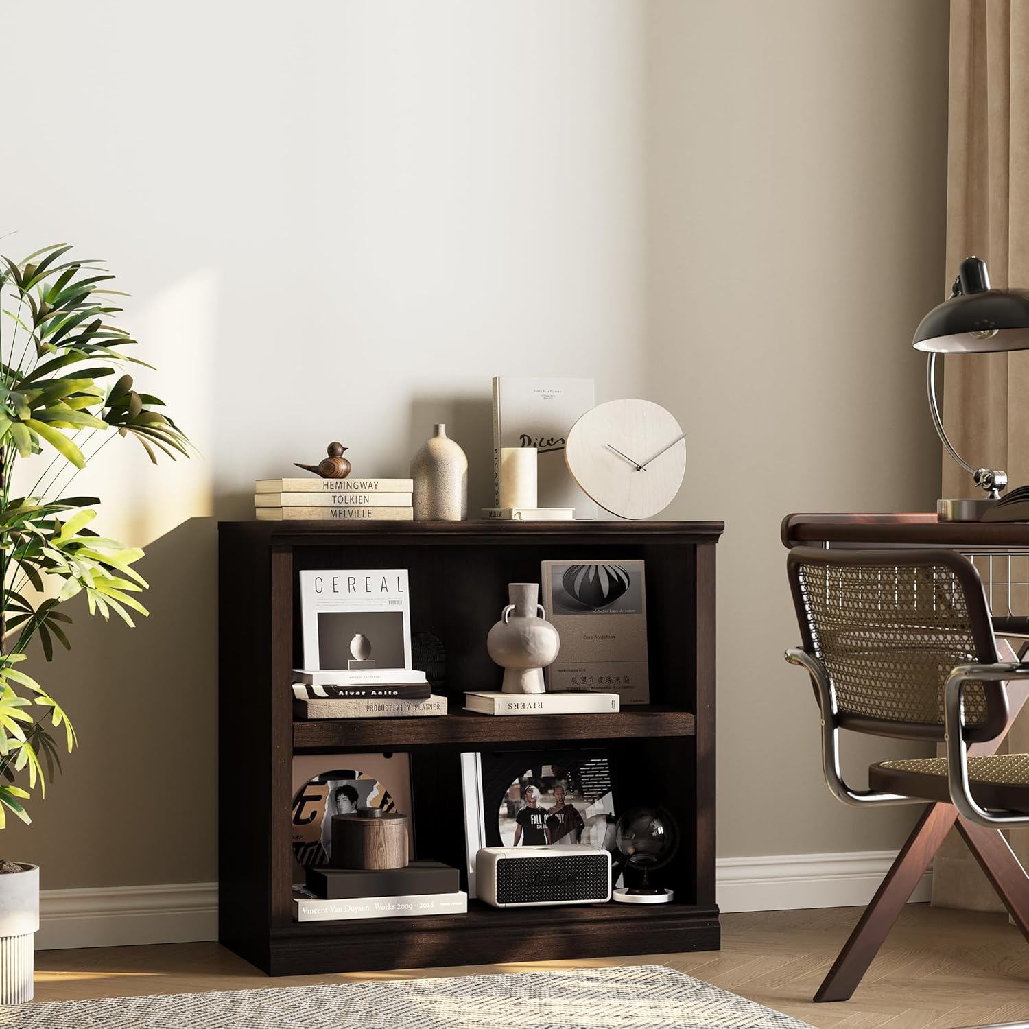 - Dark Cherry Design: Vintage like wood, with elegant wood-like pattern, the bookcase will fit in both classic and modern home decoration, and it perfectly suit in most styles of your room.