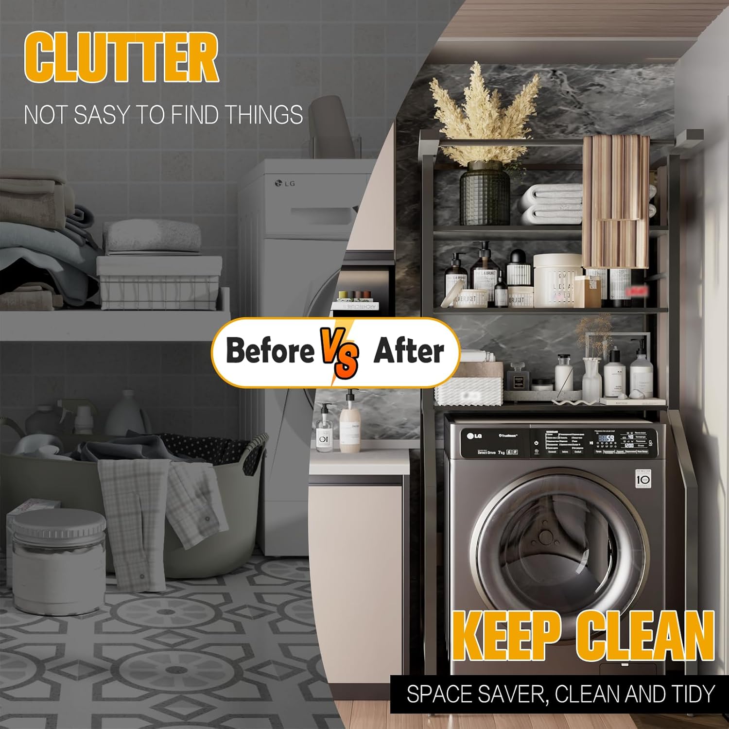 - Durable All-Steel Construction for Superior Stability: This over the washer and dryer storage shelf is made from tough, all-steel materials with extra-thick pipes for excellent stability and durability. Each shelf holds up to 70 lbs, making it perfect for storing heavy items like laundry detergent and baskets without any wobbling.