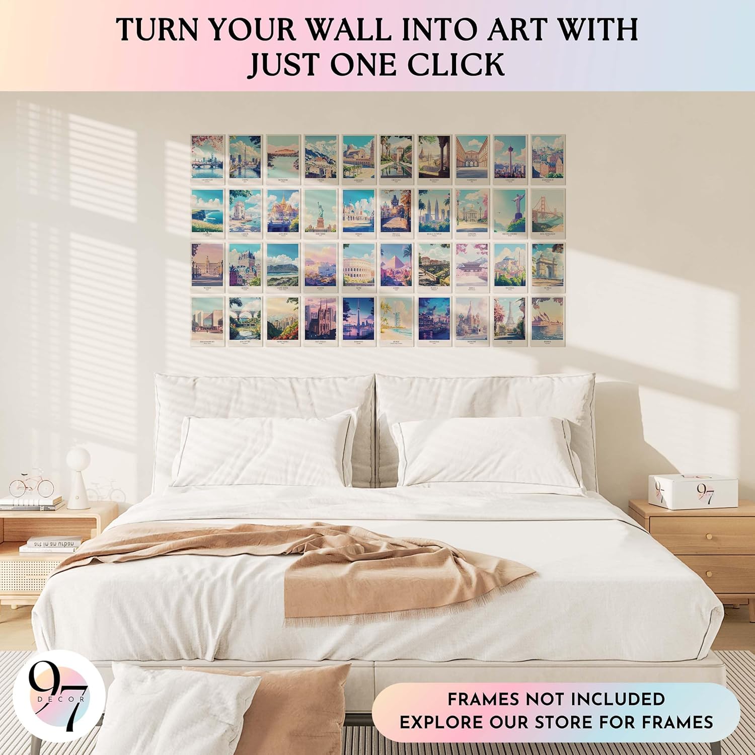 - Travel Poster Set: Explore the globe with our comprehensive Travel Poster Set, featuring 40 beautifully crafted 4x6 inch posters. This set captures the essence of travel wall decor and travel wall art, perfect for adorning any space with a spirit of adventure.