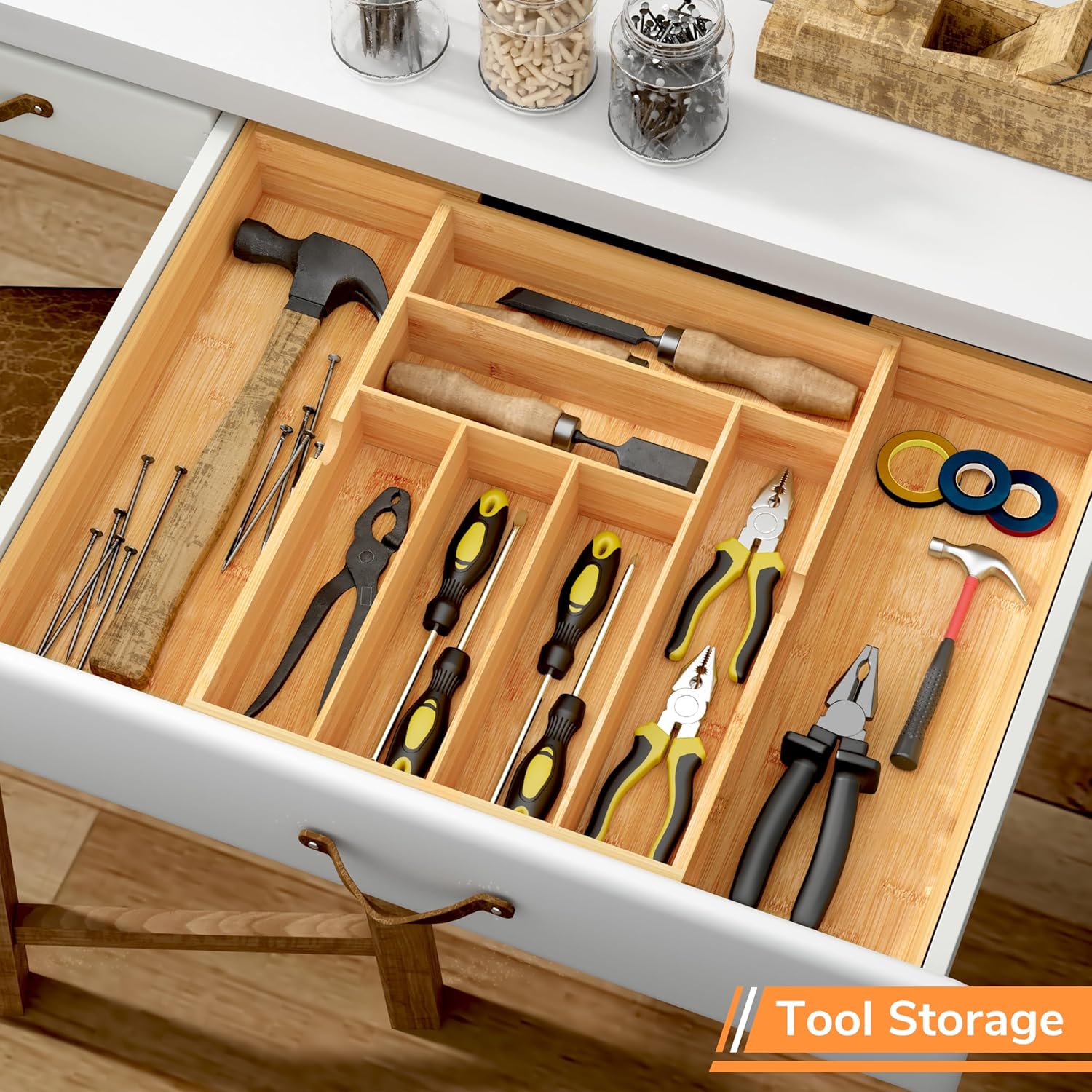 - Multi-functional Drawer Organizer: The utensil drawer organizer is perfect for organizing in a variety of scenarios, such as knives, forks, spoons and spice bottles in the kitchen; toiletries and toilet paper in the bathroom; skin care products and cosmetics on the dresser; pens and envelopes in the office; Try this organizer to keep your desktop and drawers free from clutter