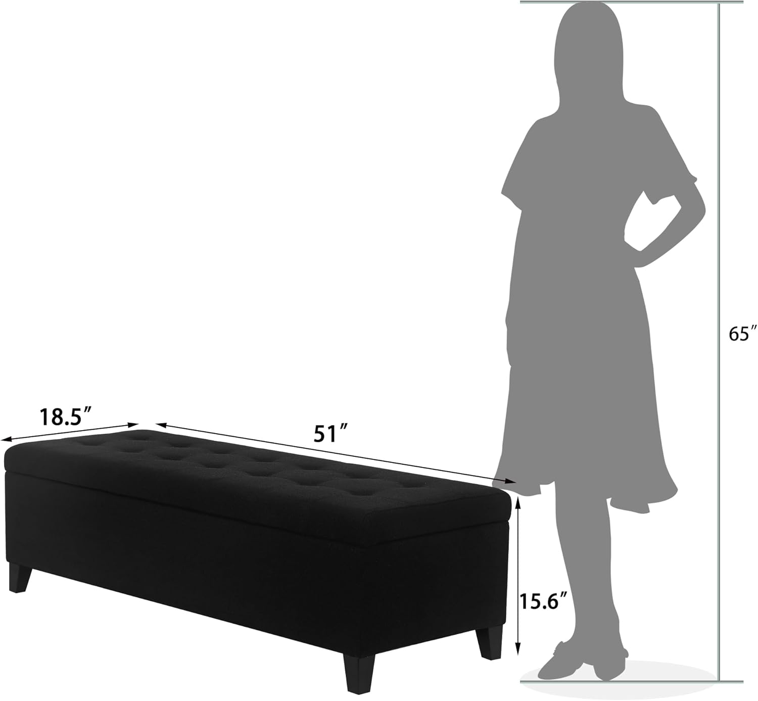 - 【Large Storage Space】This long storage ottoman has a big space to store your blankets,pillows,cloths,books,etc.Bench with storage Overall: 51 L x 18.5W x 15.6 H inches.