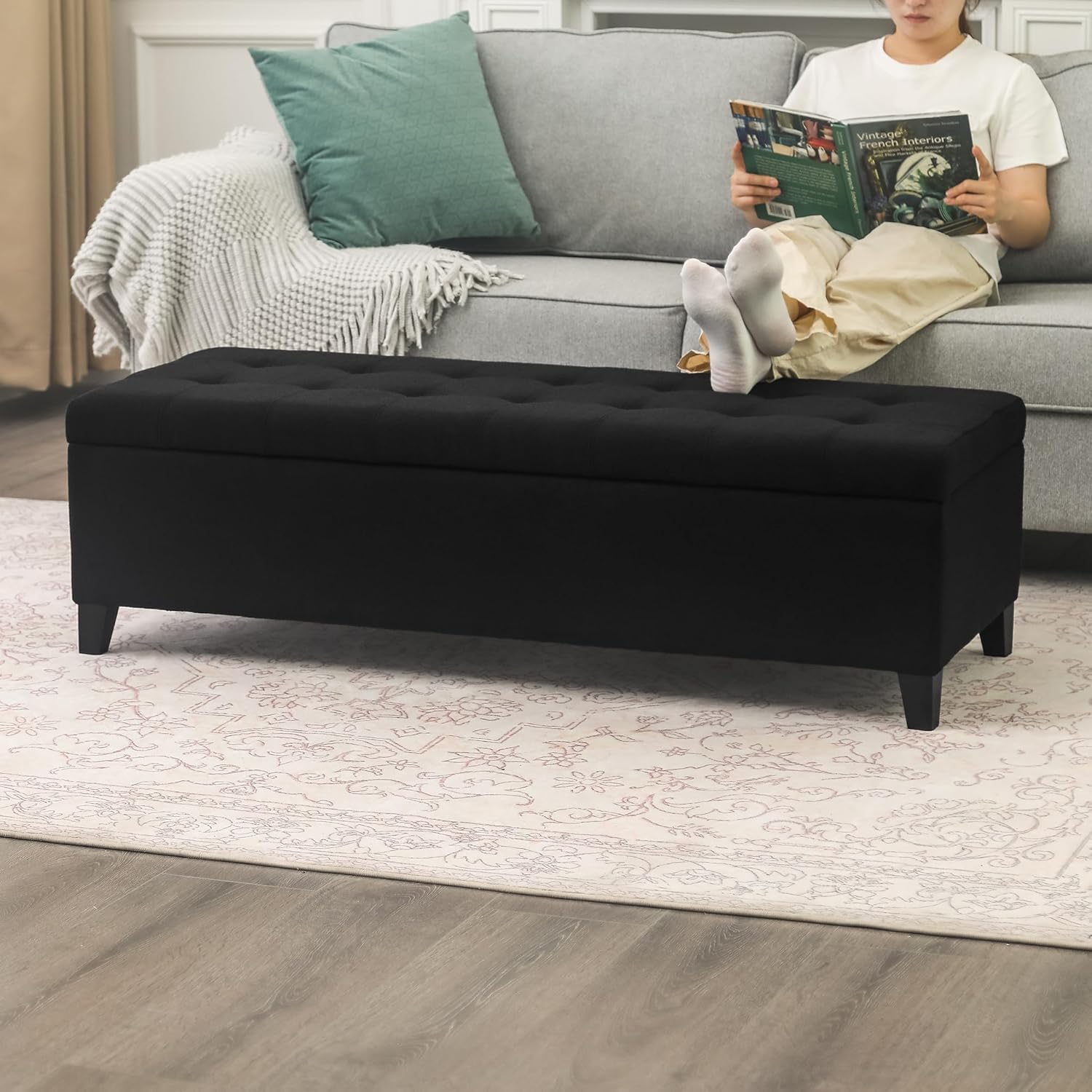 Joveco Storage Ottoman Bench, 51" Rectangle Long Bench, for Bedroom, End Foot of Bed, Living Room, Entryway, Line Black