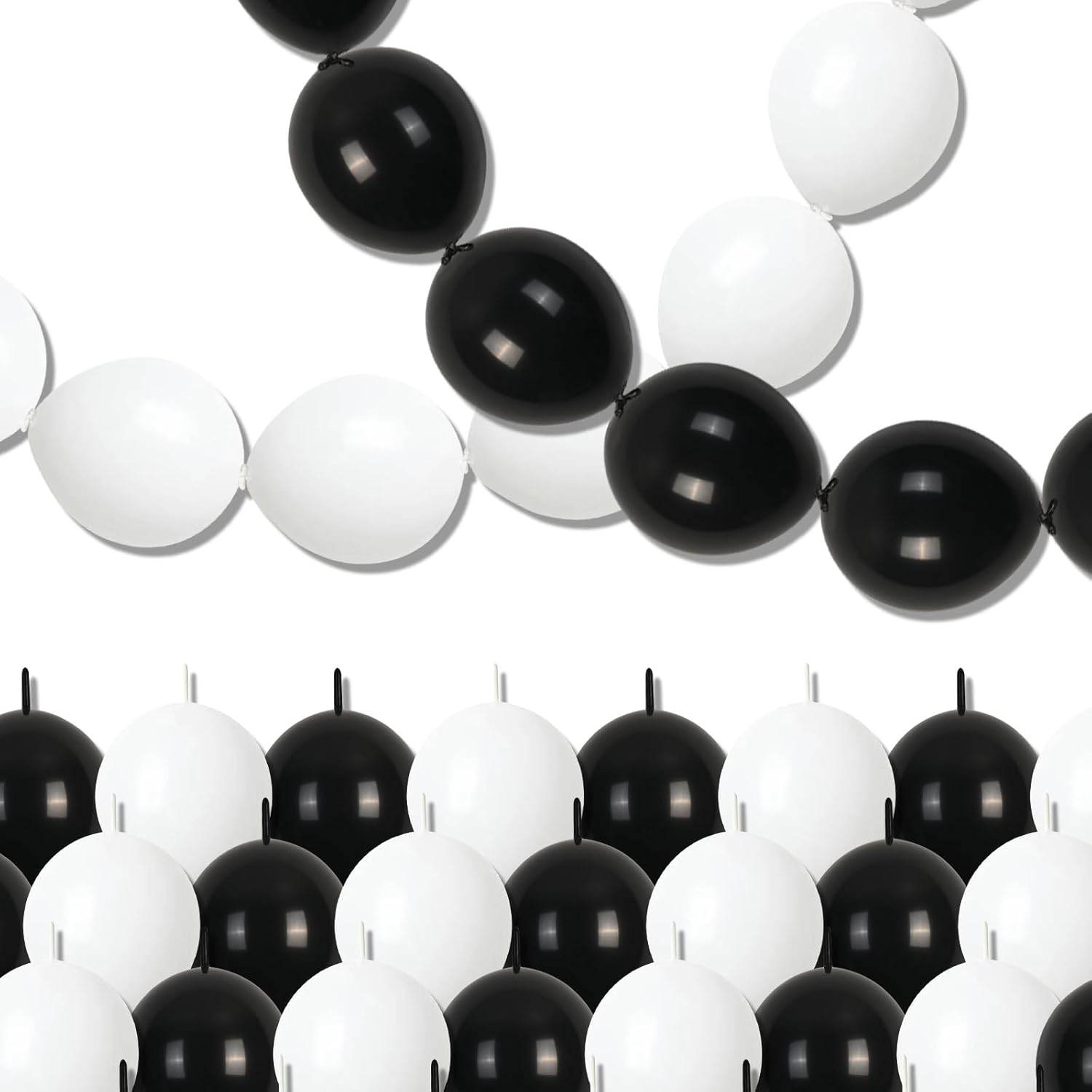 - 💫Balloon Chain Garland - You will receive 100 pcs of 10inch black and white balloons, include (black link balloons 10inch*50pcs, white link balloons 10inch*50pcs). Our quick link balloons have a unique tail design that allows balloons link to be easily. More convenient and easier to assemble than regular balloons.