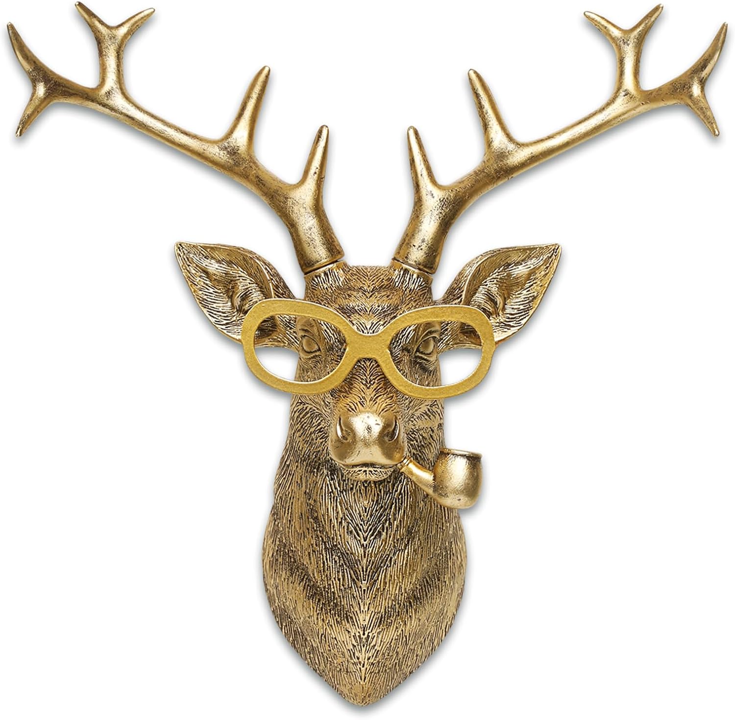 Animal Heads Wall Decor Resin Animals Sculptures Head Wall Hanging Decoration Gold vintage Wall Sculpture for Living Room Bedroom Office(Deer,not include metal frames)