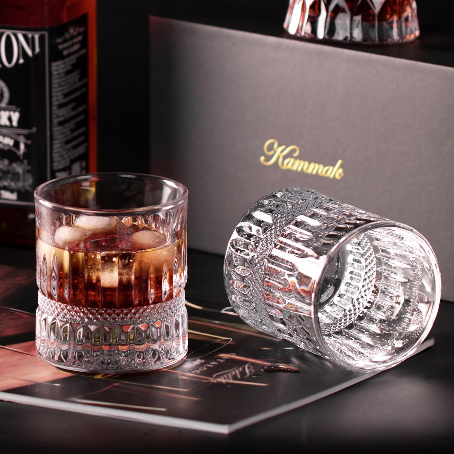 - Unique Design: The whiskey glasses are designed in a classic and simple style, with exquisite engravings that sparkle when the light shines on the old fashioned glass. After the rotation, the aroma of the whisky is stimulated, which brings a better drinking experience.