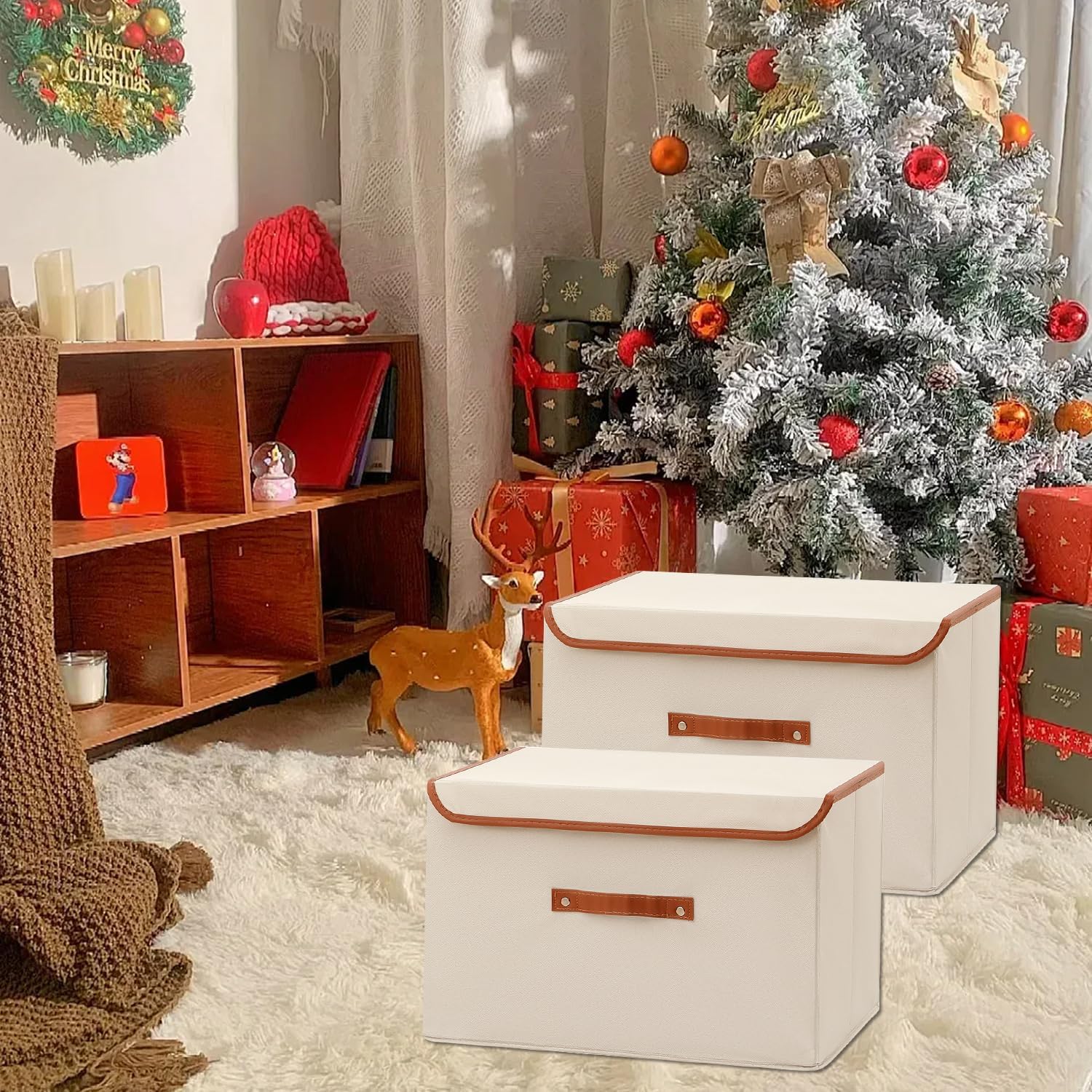 - Multi-purpose Storage Baskets: These stylish storage bins with lids are perfect for organizing and storing seasonal clothing, shoes, pet supplies, toiletries, sports equipment, and office essentials. Their large, collapsible design fits seamlessly into any space—whether it's the living room, bedroom, closet, dorm, bathroom, utility room, under the bed, office, or even the hallway. They also make a fantastic gift for back-to-school or holiday occasions!