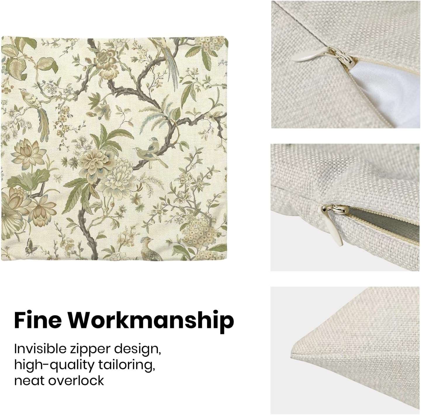 - 【Spring Pillow Covers】 Our Chinoiserie floral throw pillow covers 24x24 inch are made of excellent breathable polyester cotton fabric. The sage green floral decorative pillow covers is durable, soft and skin-friendly. The plant outdoor pillow covers adopt exquisite edging technology and four sides of our floral pillow covers are sewn firmly, which is not easy to open the line.
