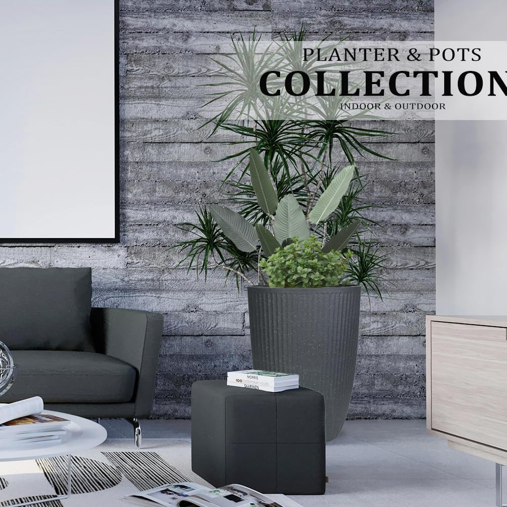 - FLUTED DESIGN โ The special modern and stylish design of these tall square planter flower boxes is super for large outdoor and indoor plants, herbs and flowers at home, office, hotel, resrestaurants etc. Ideal for any front entrance, poolside, patio, or spacious hallway, porch, deck, backyard