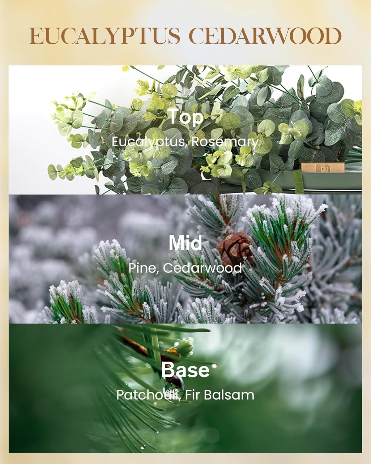 - Scent : cedarwood, eucalyptus