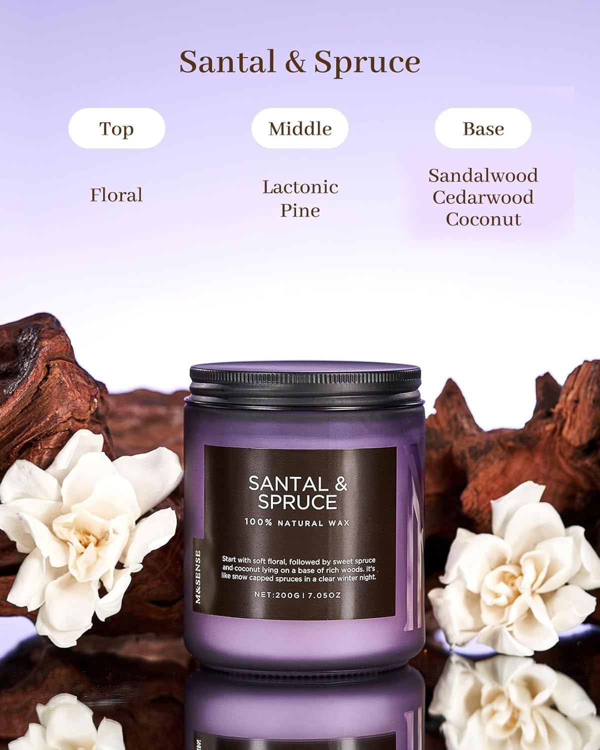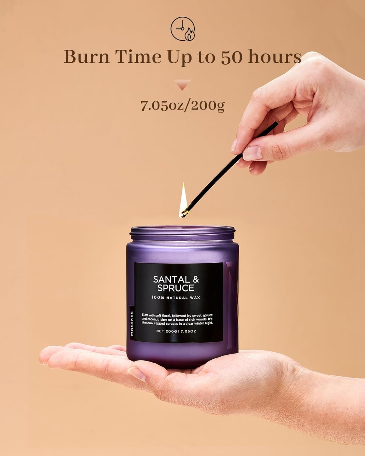 - Sustainable Formula - M&SENSE candles are all made with the finest and most natural ingredients. Using a high-end blend of American grown soy and vegetable wax with unbleached cotton wick in a reusable and recyclable glass jar. Packaged in recycled cardboard box for a more sustainable future. The slow-burning nature of soy wax allows for 50 Hours fragrance experience, providing you with relaxation and enjoyment