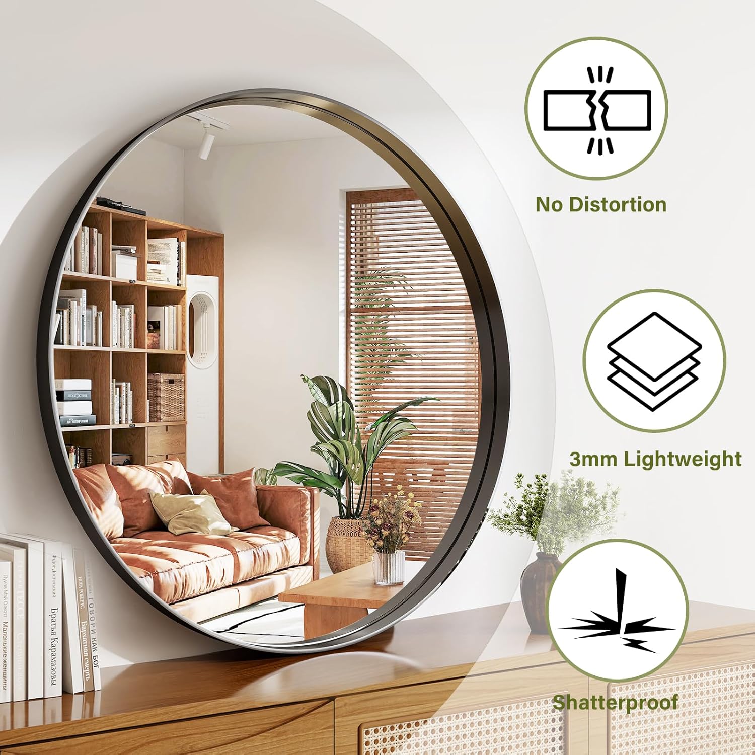 - High-quality Aluminum Alloy :Our black round mirror is crafted with durable aluminum alloy combined with an oxidation process. Its minimalist design and classic matte texture perfectly complement any room and match your home decor