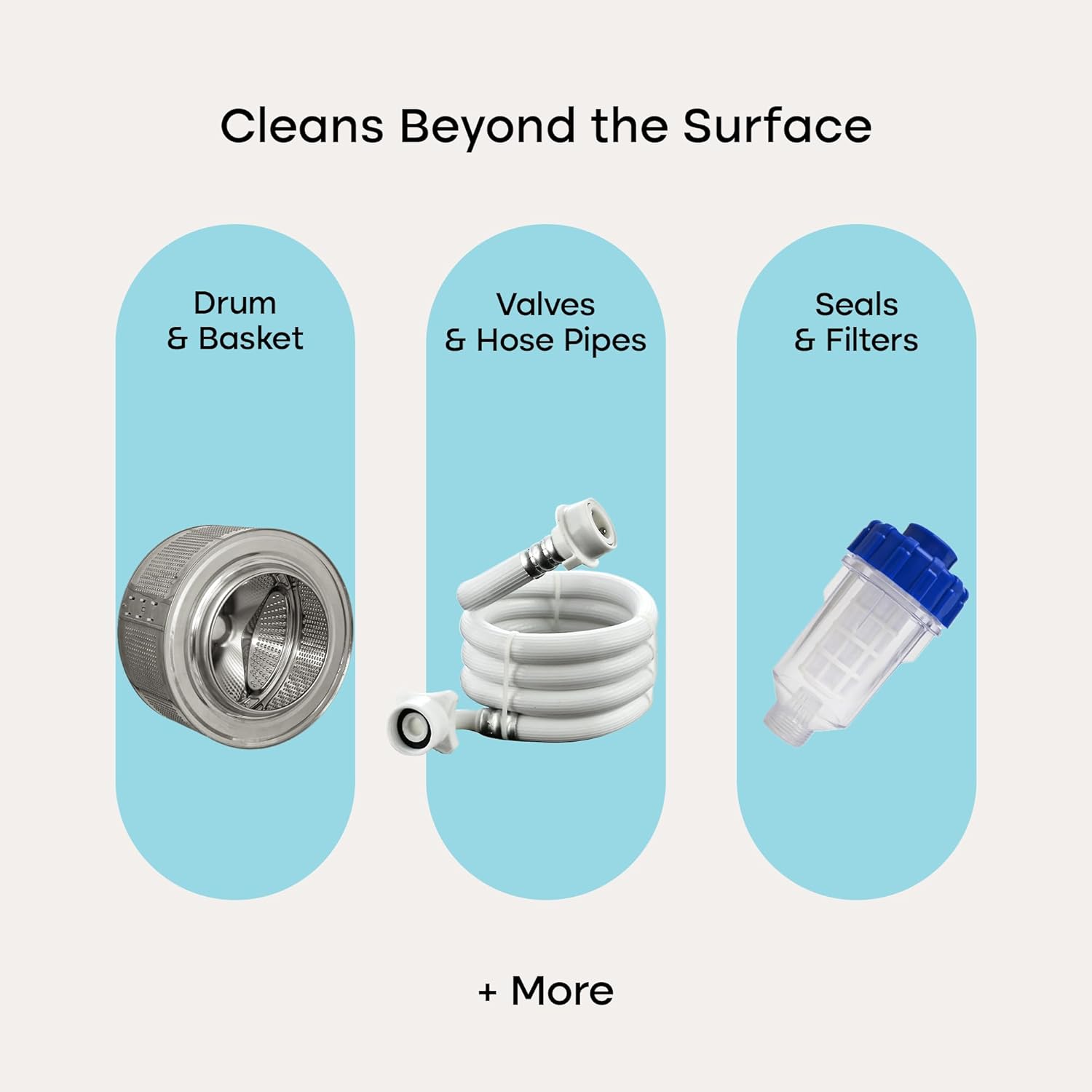 - 40% More Deep Cleaning Power: Completely refresh your drum, valves, hose pipes, seals, and filters with a single wash cycle using our larger ultra-concentrated washer machine cleaner tablets.