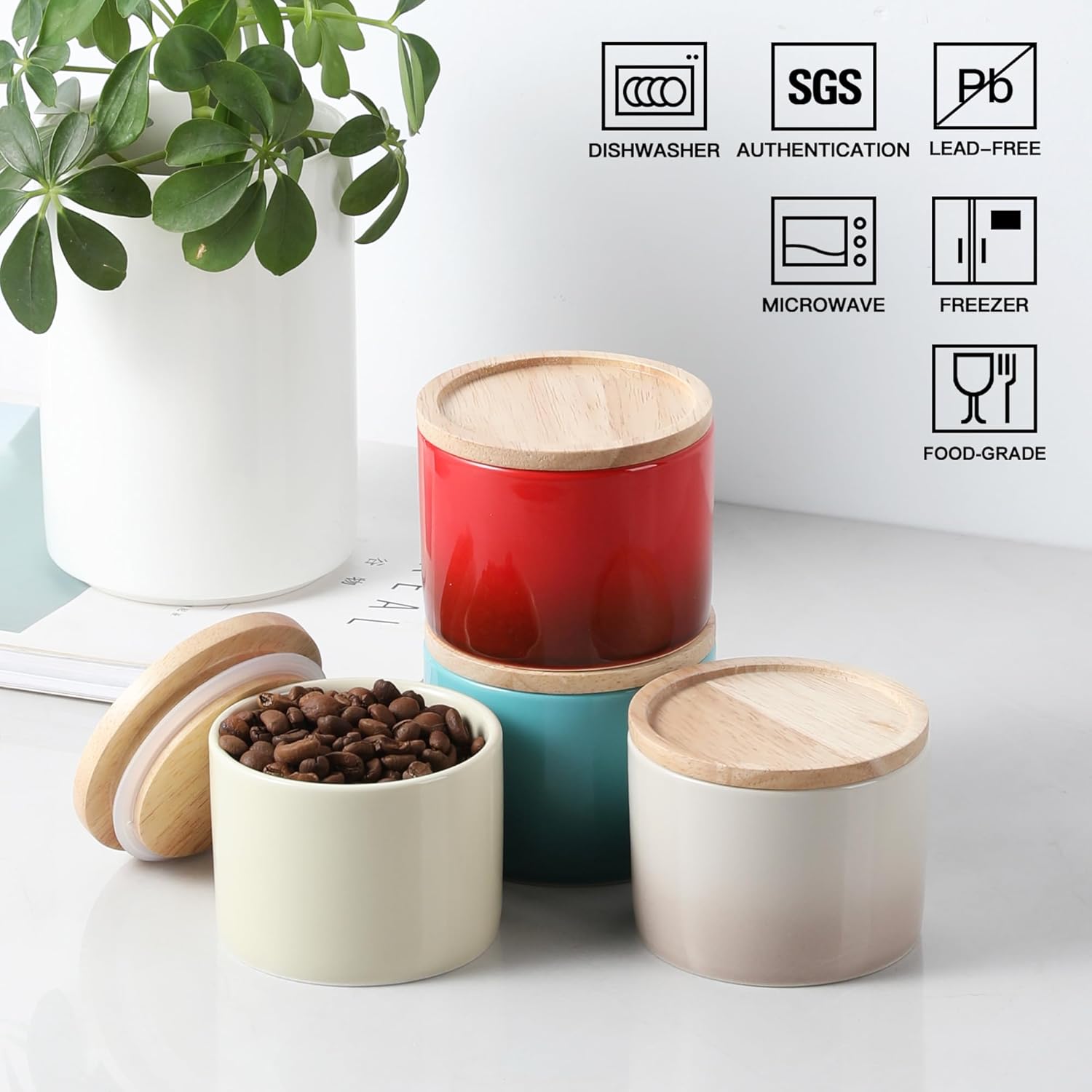 Sweejar Kitchen Canisters Ceramic Food Storage Jar, Stackable Containers with Airtight Seal Wooden Lid for Serving Ground Coffee, Tea, Sugar, Spice and More - 5 Fl Oz(Gradient Red)