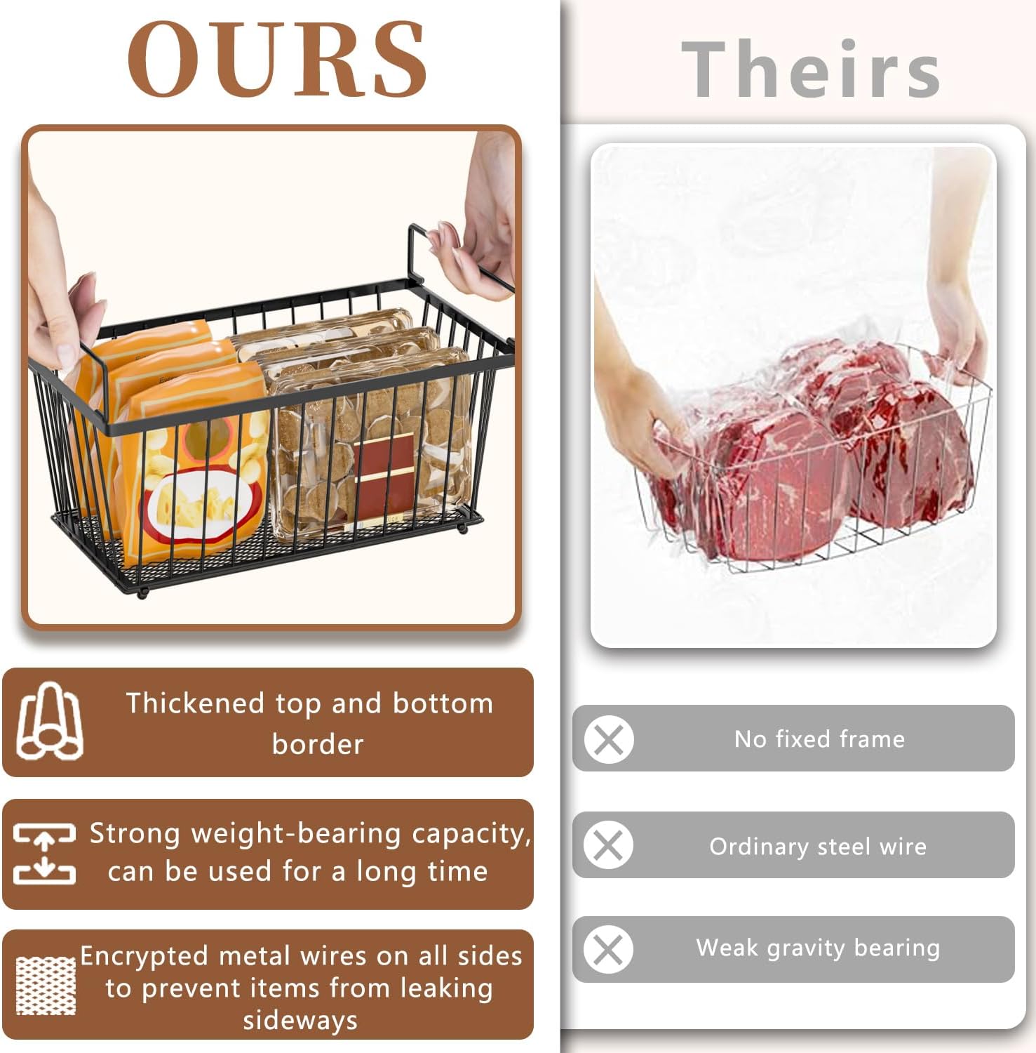 - Thickened Frame and Four-Sided Metal Mesh: Our chest freezer organizer bins are made of high-quality metal, with reinforced and thickened upper and lower frames and dense metal mesh design on all four sides, providing stronger load-bearing capacity and resistance to deformation. Therefore, this chest freezer organizer is more durable compared to regular models.