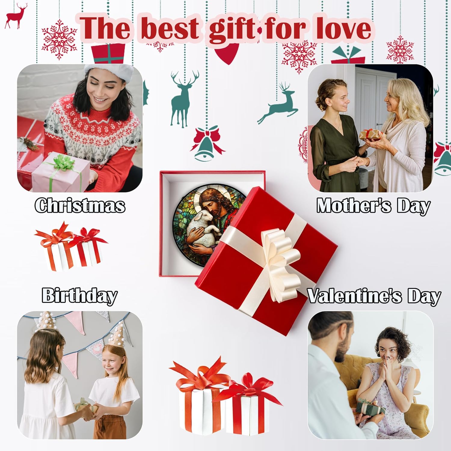 Stained Glass Window Hanging, Jesus Little Lamb Sun Catchers Colorful Glass Panel Christianity Suncatcher Decor for Birthday for Women, Men, Wife, Aunt, and Mom 7.8 in