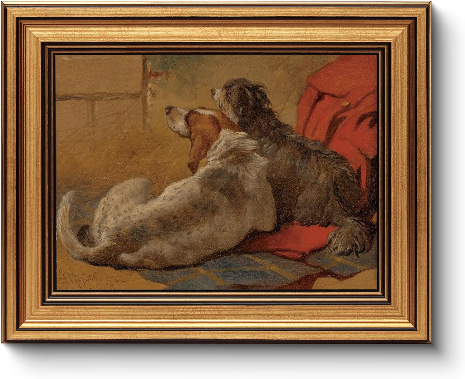 HUARCEY Gold Framed Vintage Wall Art for Living Room Dogs Oil Painting Wall Decor– Cozy Pet-Themed Aesthetic Room Decor for Bedroom Prints Study Classic Animal Artwork Gift for Dog Lovers 8"x10"