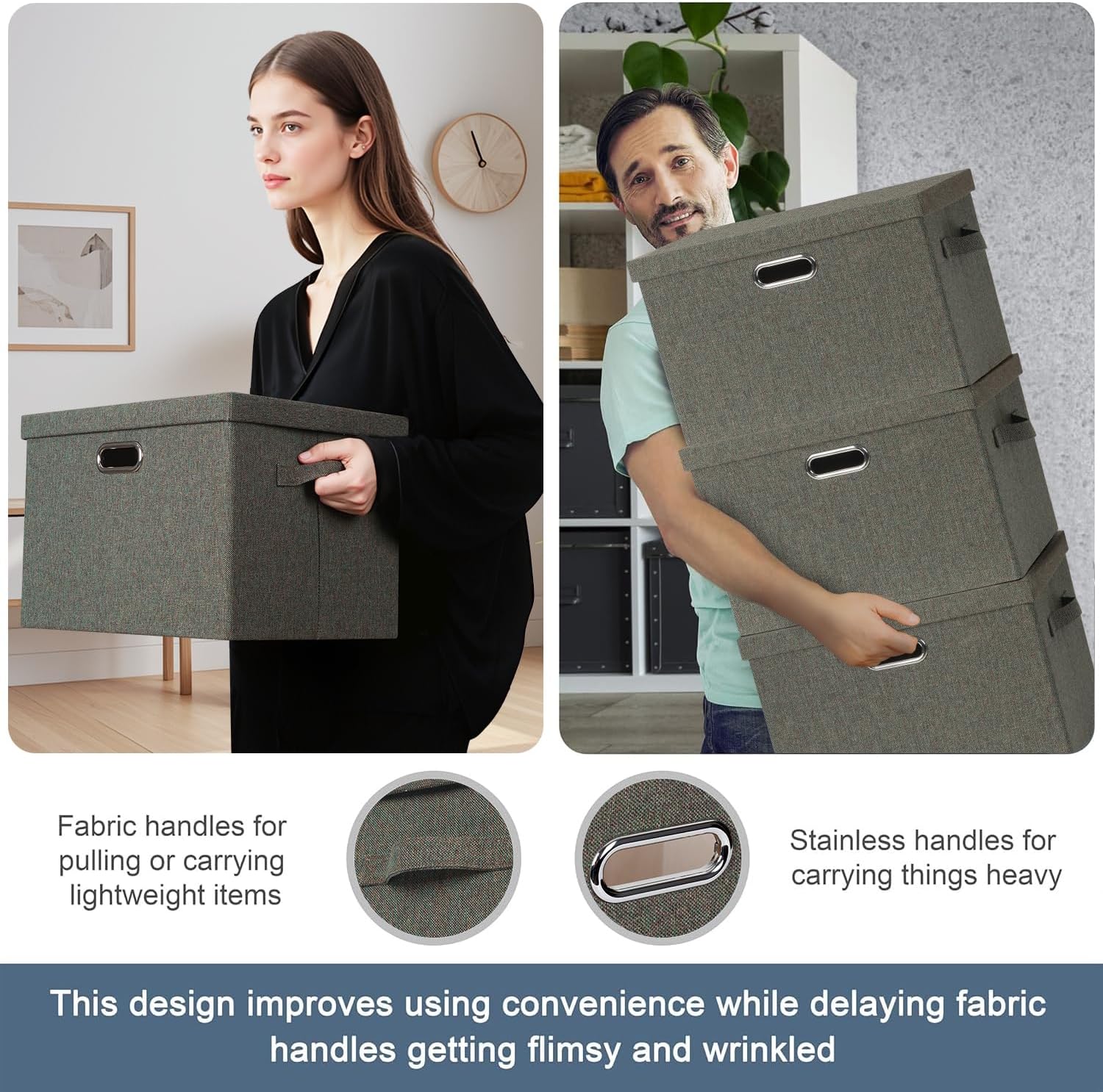 - β [Constant Use] Covered by thick textured cloth, our large lidded storage bins prevent daily wears and tears. They can keep dust and bugs out also, avoiding dirt and musty smell. You can use these decorative storage boxes with lids everyday or for long term storage.