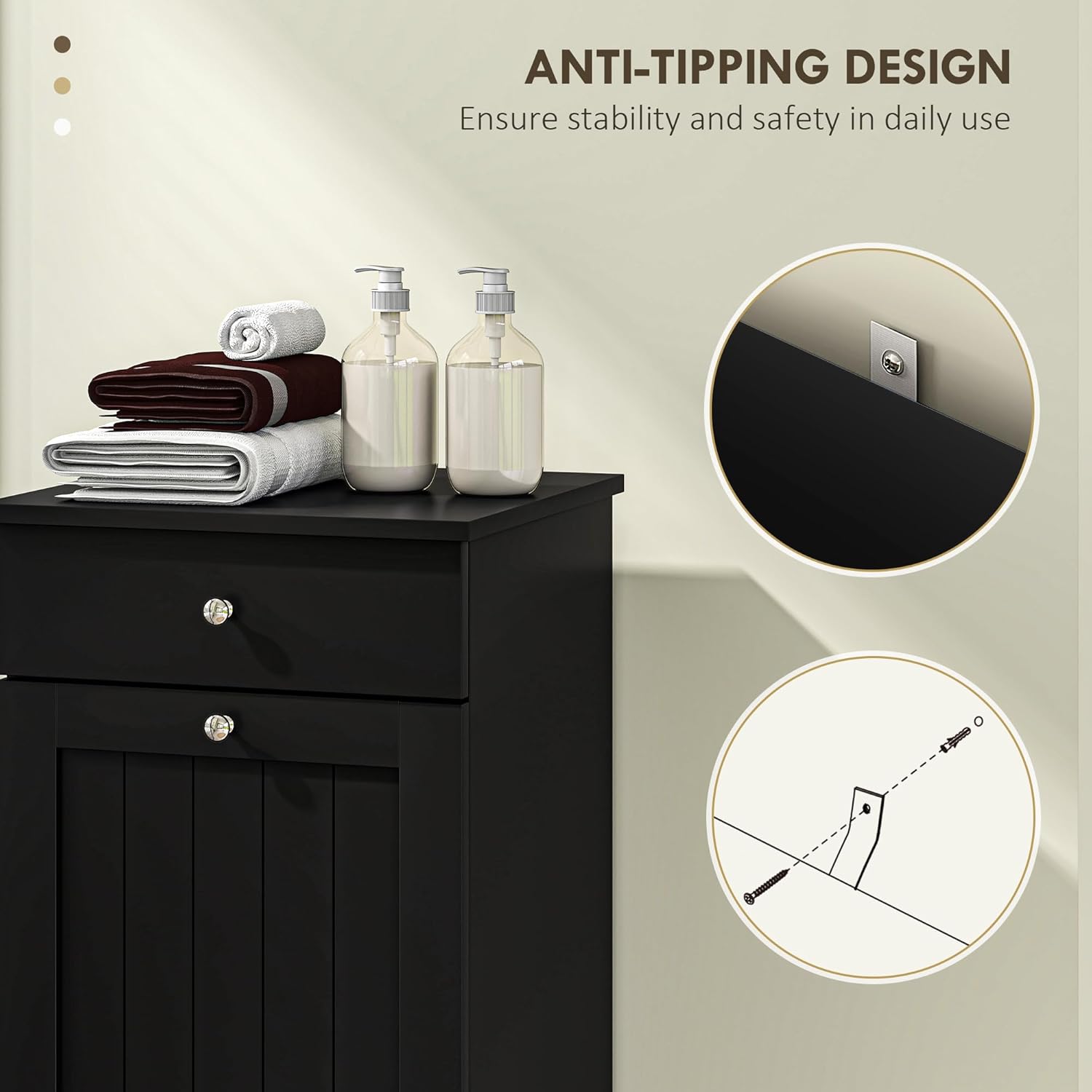 - Safety First: Our hidden laundry hamper cabinet features an anti-tipping design to prevent it from tipping over and enhances stability, ensuring safety for your home
