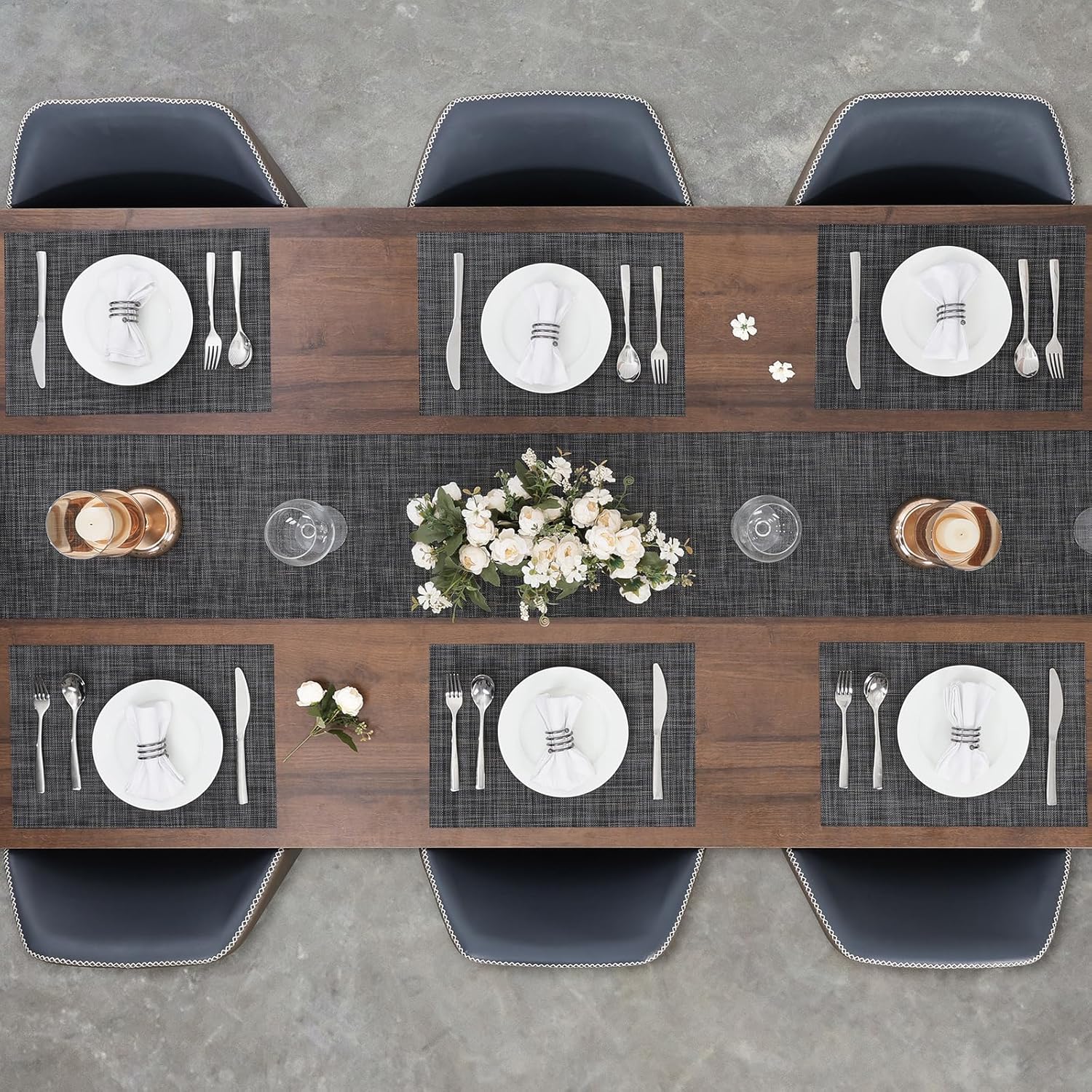 Myir JUN Placemats Set of 4, Vinyl Woven Placemats Place Mats Indoor Set of 4 Washable Table Mats Non-Slip Place mats for Dining Table (Dark Gray-Black, Set of 4)