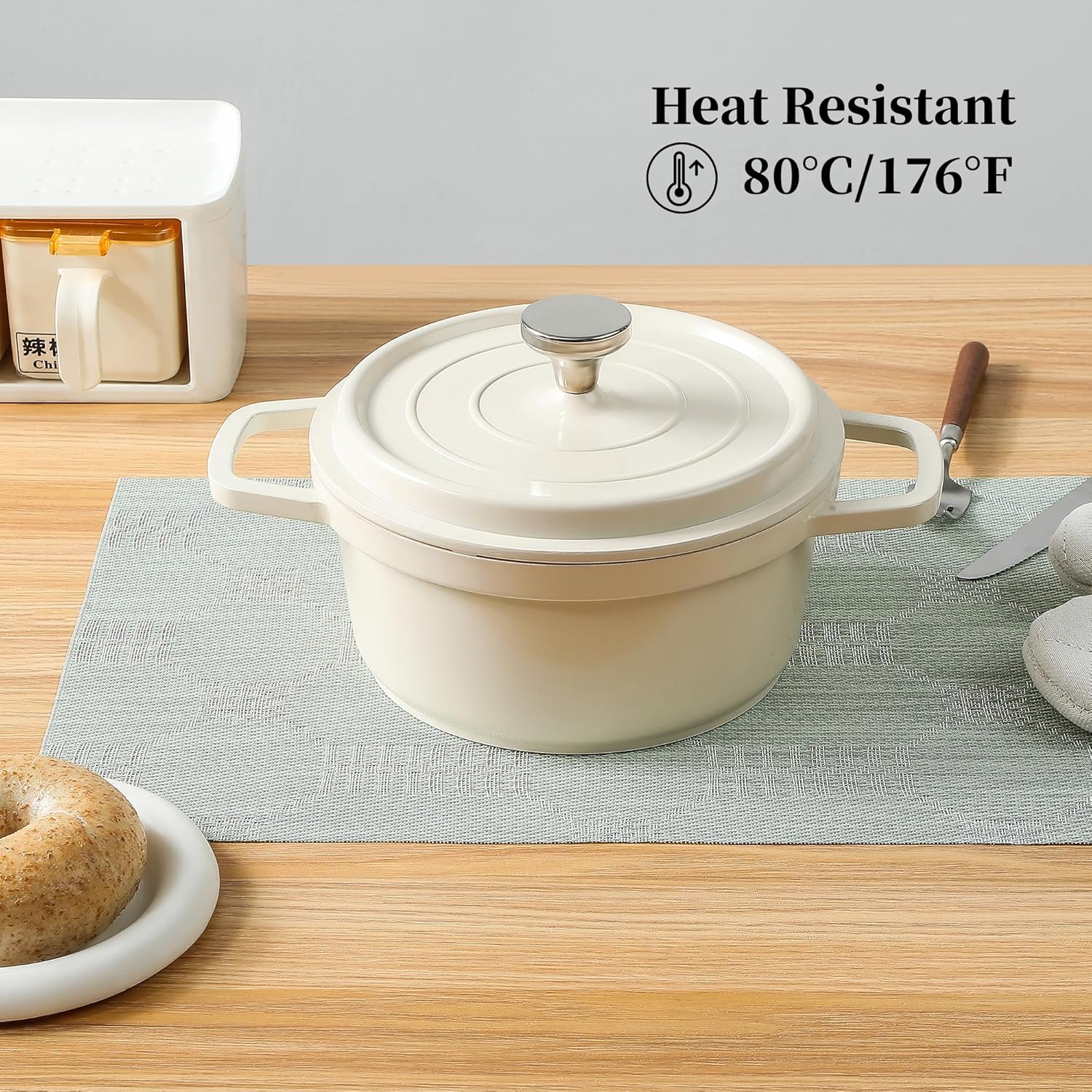 - Protects Your Table: Keep your table safe from scratches and spills with our heat-resistant placemats. They can withstand temperatures up to 176℉(80℃) and help keep food warm. Add style to your dining setting while ensuring table protection