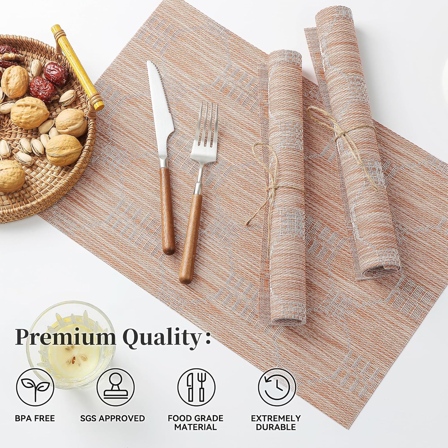 - Elegant and Practical Design: With a luxurious vinyl woven texture, precision cutting, and heat-trimmed edges, our double-sided placemats offer a sophisticated and practical solution. They provide a non-slip surface, resist fading, and are easy to clean, elevating your dining experience