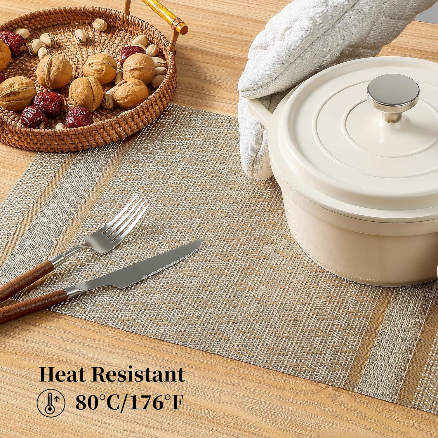 - Protects Your Table: Keep your table safe from scratches and spills with our heat-resistant placemats. They can withstand temperatures up to 176℉(80℃) and help keep food warm. Add style to your dining setting while ensuring table protection