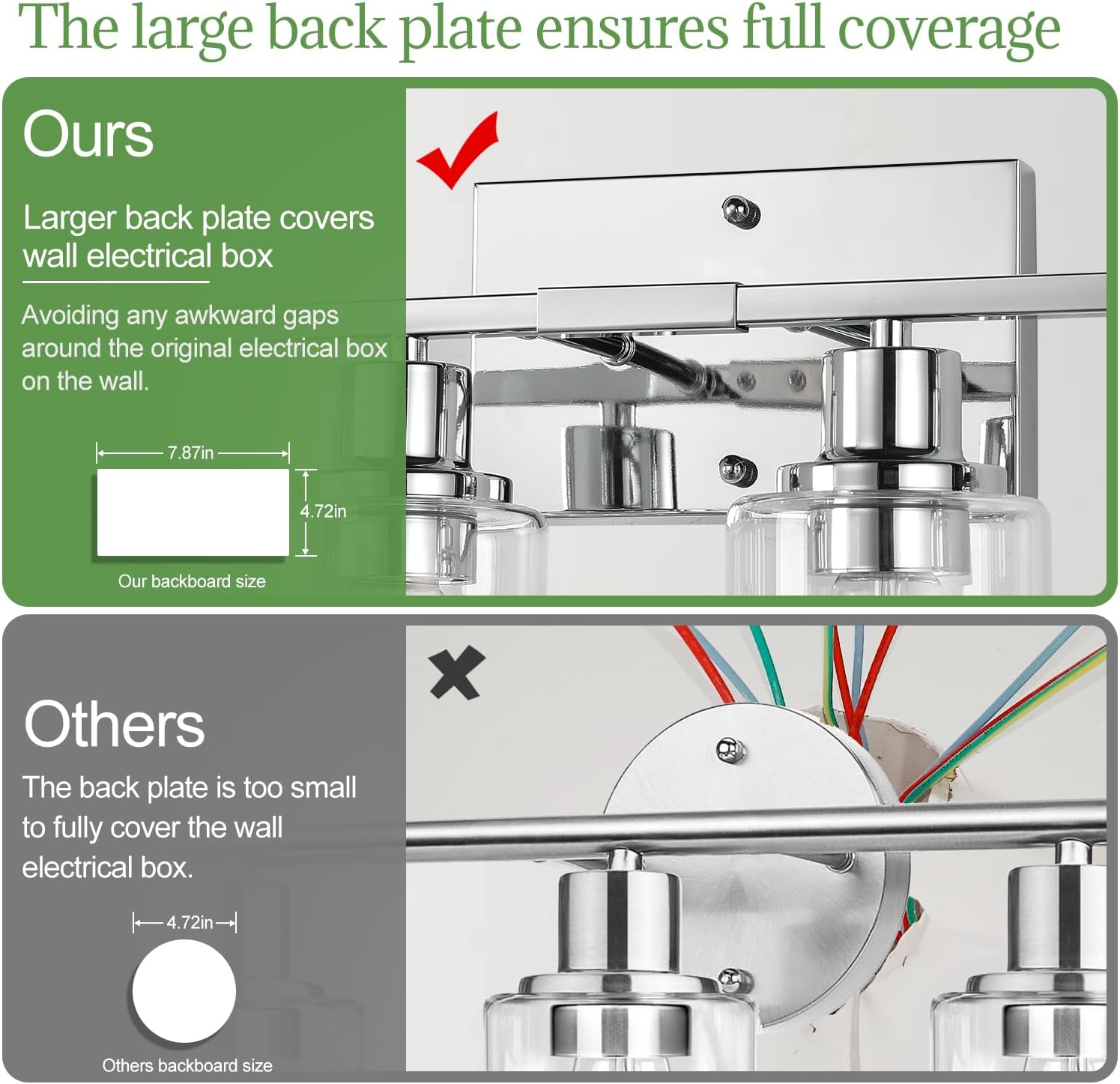 - 36-month warranty - We proudly stand behind all our vanity lights for bathroom, guaranteeing their quality with a full 36-month warranty. If your bathroom light fixtures encounter any defects or stop working within 3 years, we are here to assist you with troubleshooting or provide a replacement. If you experience any issues with our wall light fixtures, please contact us through the Amazon message box, and we will respond within 24 hours.