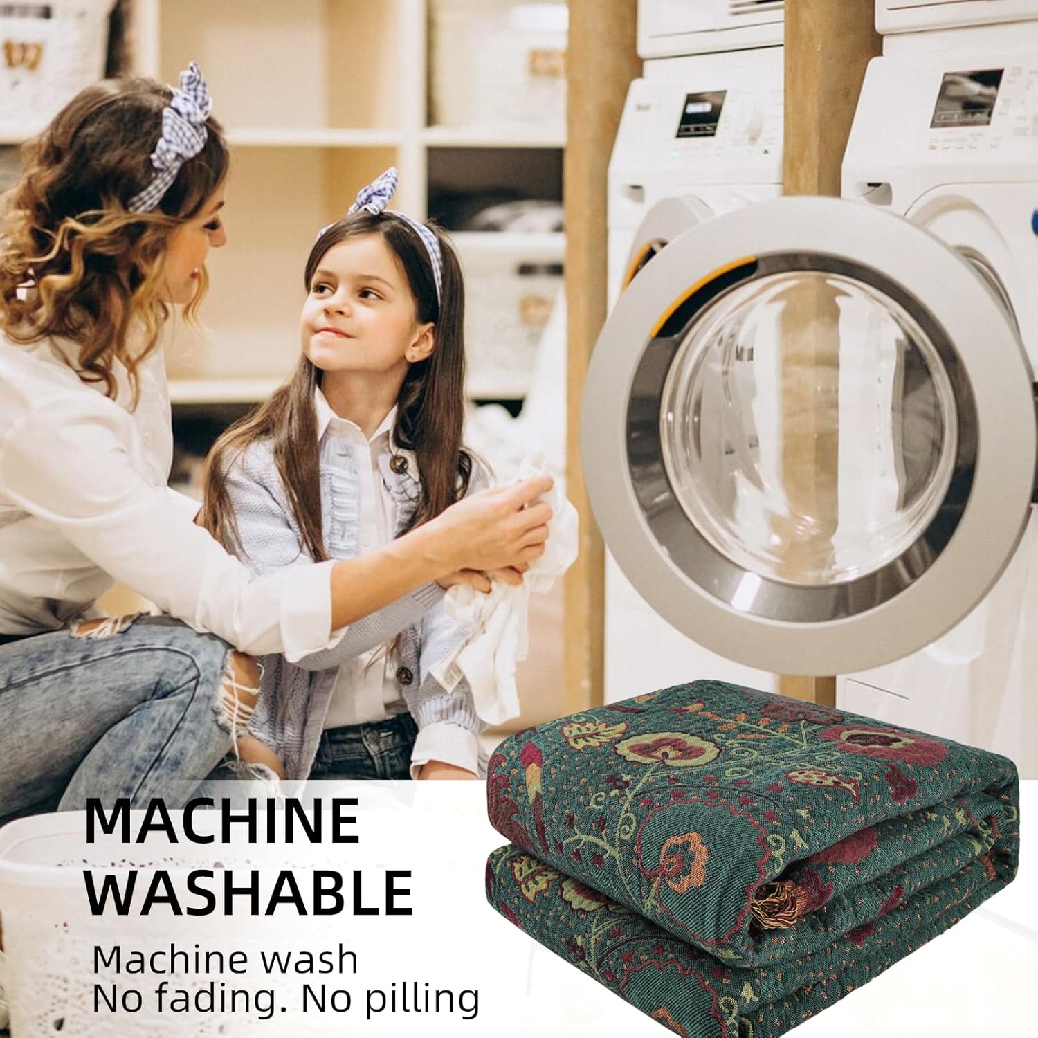 Boho Throw Blanket for Bed - 100% Pure Cotton Ultra Soft Rustic Quilt - Farmhouse Decor Bed Blankets, All Season Rustic Throw for Sofa Couch Chair(80''x 90'', Floral)