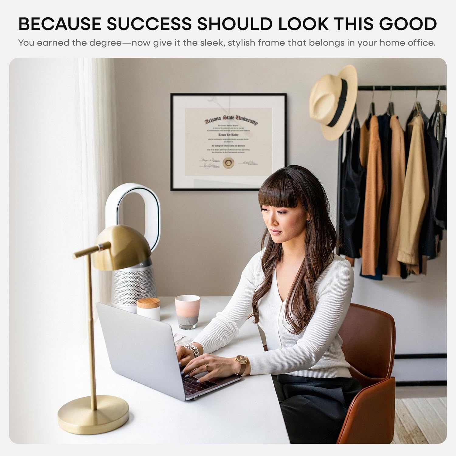 Homeforia 15x18 Diploma Frame Black, High End Metal 15 x 18 Black Certificate Frame with Mat 11 x 14, 18x15 Document Frame Matted to 11x14, Graduation Degree Frames, Tempered Glass, Wall Kit, Set of 1
