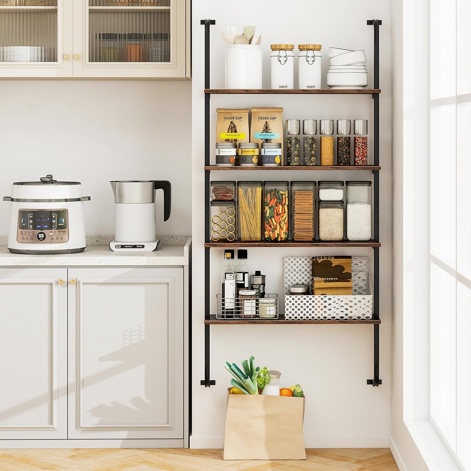 - [Versatile Display and Storage Solution]: Tailored to suit a variety of settings, this versatile shelving unit functions as a chic bookshelf in your office, an artistic display shelf in your living room, or a practical storage rack in your kitchen. Its aesthetic appeal and functional adaptability make it a valuable addition to any space.