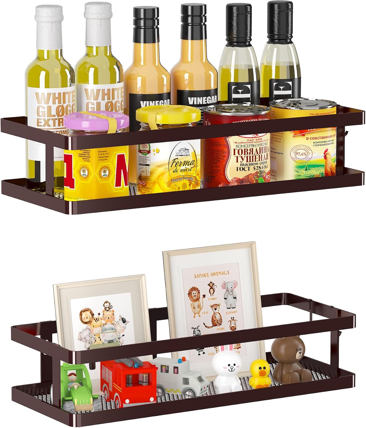 PUSDON Metal Wall Hanging Basket 2 Packs DIY Suitable for Multiple Scenes - Middle Bronze Guardrail