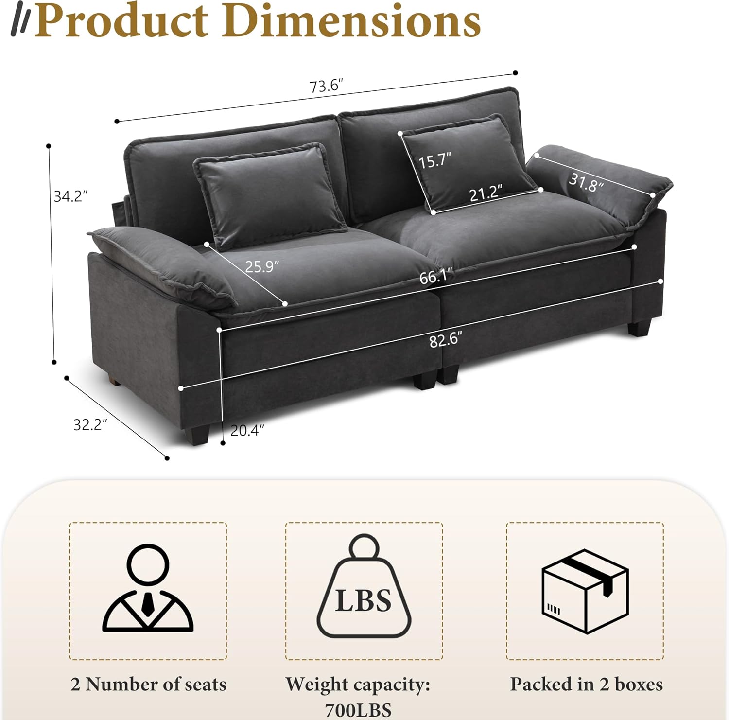 - Product Dimensions : 32.2"D x 82.6"W x 34.2"H