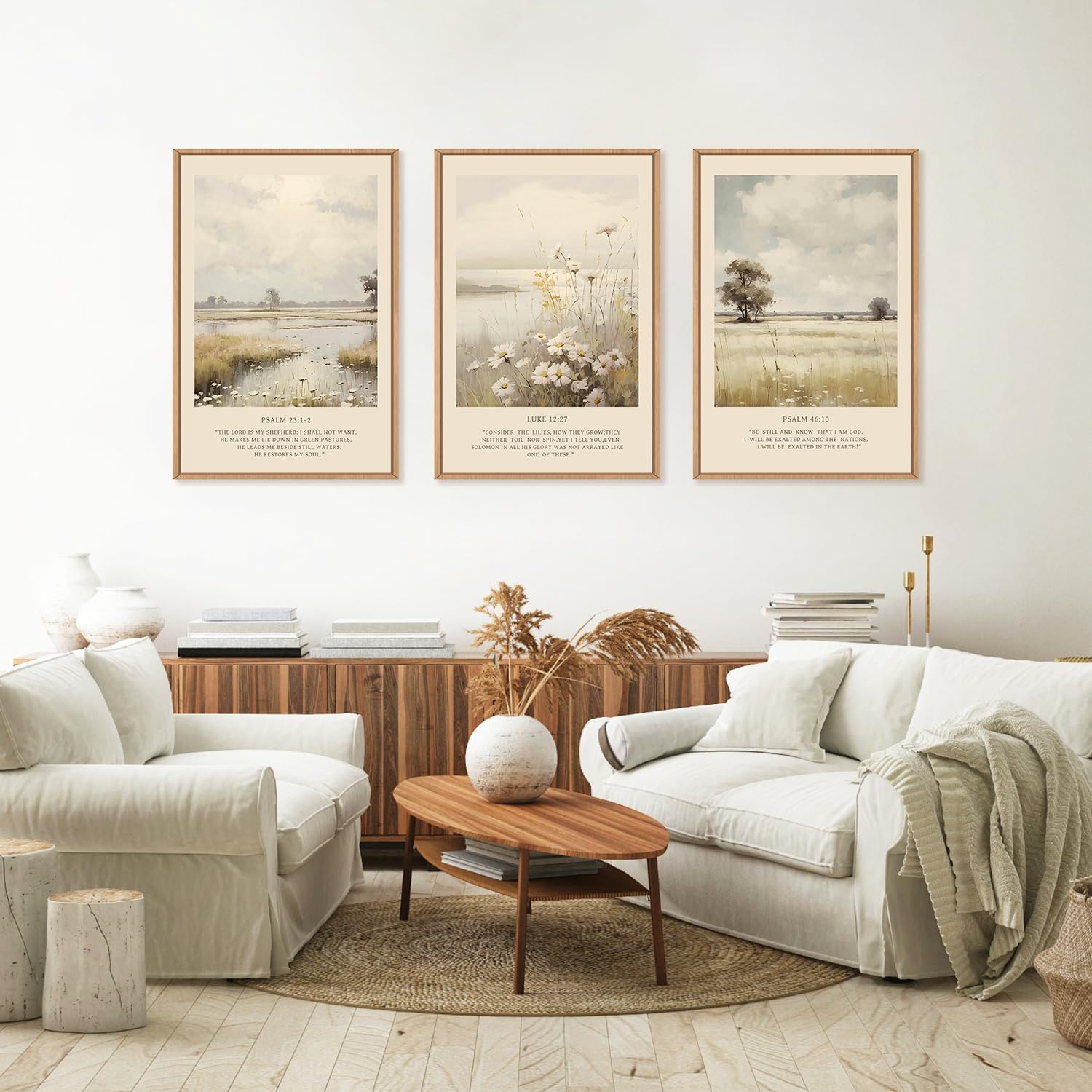 HPINUB Christian Bible Verse Framed Canvas Wall Art Set,Modern Scripture Floral Wall Decor,Vintage Jesus Religious Natural Wildflower Art Print for Living Room,Bedroom,Farmhouse,Prayer Room-24"x36"x3
