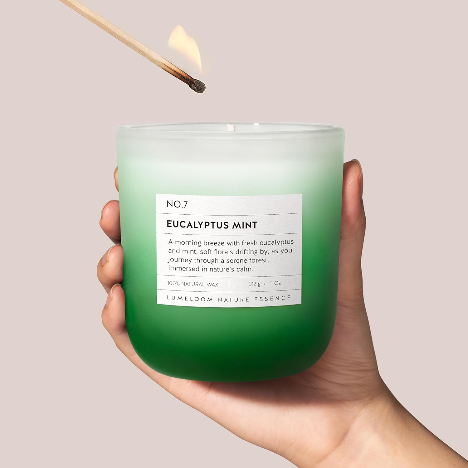 - Eucalyptus & Mint Candle: Our scented candle blend of eucalyptus, jasmine, mint, cedar and wood. Enjoy each burn as it fills the space, turning it into a fresh, fragrant paradise. It's a perfect scented candle gift for men, women, sisters, and friends