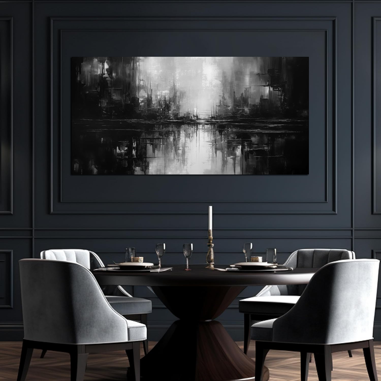 Large Abstract Canvas Wall Art for Living Room Large Size,Black and White Pictures Wall Art for Office 29 x 59 Inch