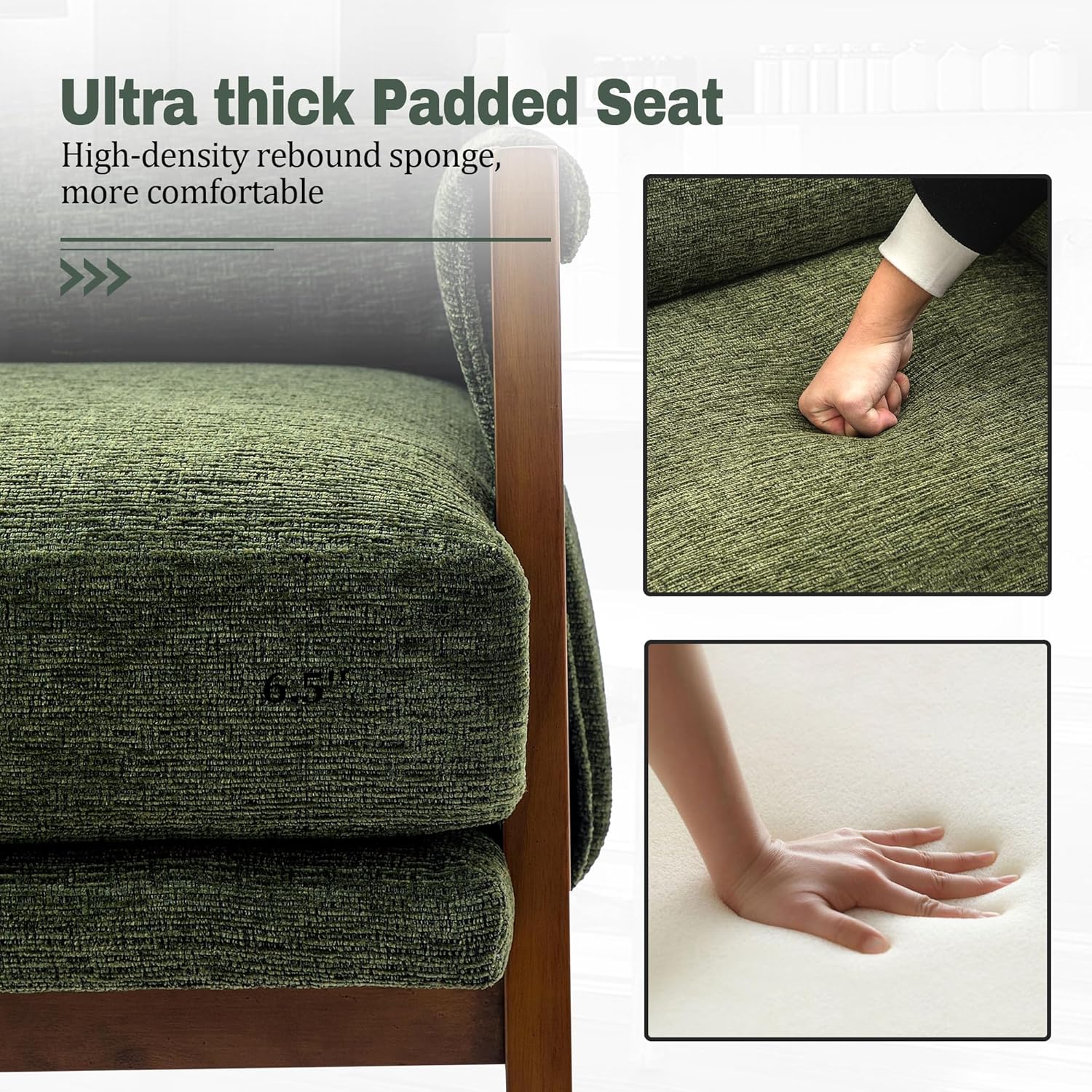 Modern Accent Chair for Living Room Mid Century Arm Chair Upholstered Bedroom Chair Comfy Lounge Chair with Solid Wood Frame, Green
