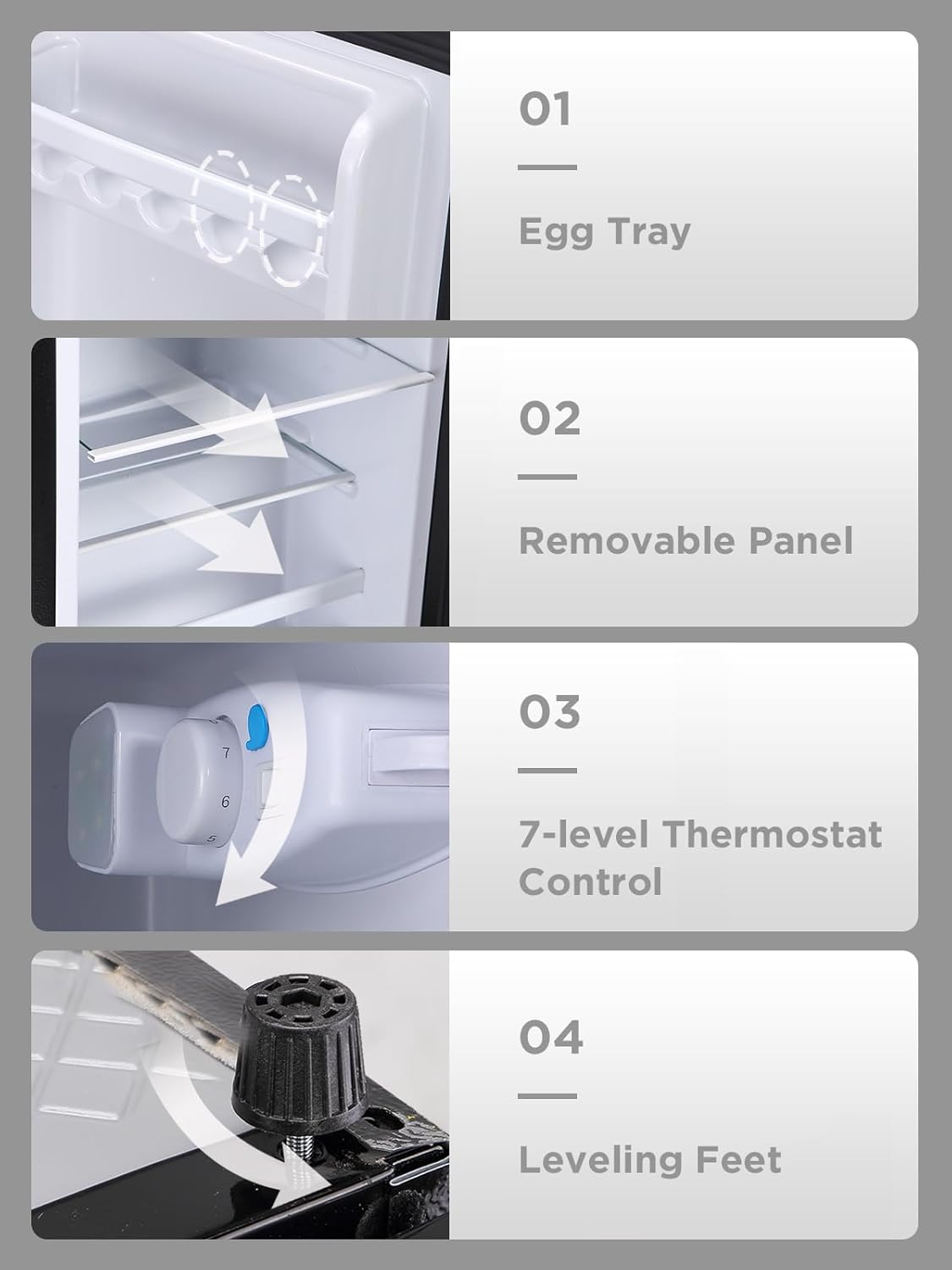 - Quiet & Energy-Efficient Operation: Designed for eco-conscious households, this compact refrigerator runs quietly at less than 40dB—quieter than a library whisper. Its energy-efficient design saves on electricity while keeping your space peaceful and undisturbed.