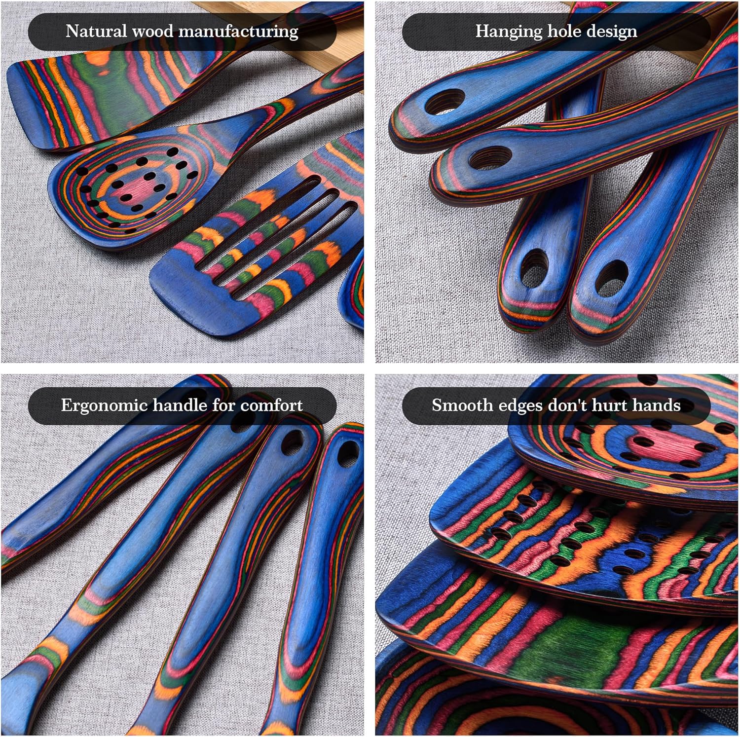 - 7 Tools for Every Cooking Task – soup spoon,spaghetti & pasta spoon,skimmer/filter spoon,seasoning spoon,perforated spatula,solid turner and sloted spatula – perfect for frying, mixing, serving, baking, and more.