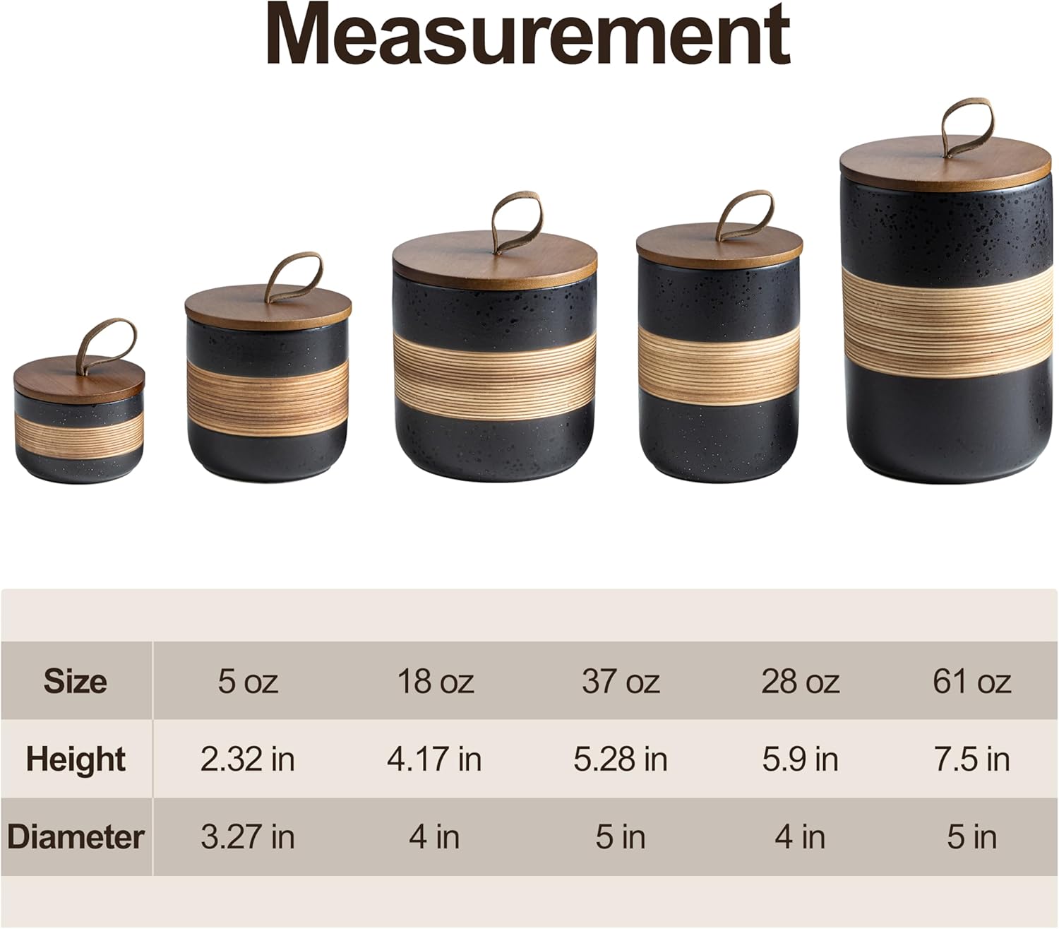 - Rope Cover Design: Each food storage container is equipped with a wooden lid, which has strong sealing and effectively isolates air, moisture, and odors, keeping food dry and fresh, and extending the shelf life of food. There is a unique rope design on the lid, which is easy to open without losing its beauty