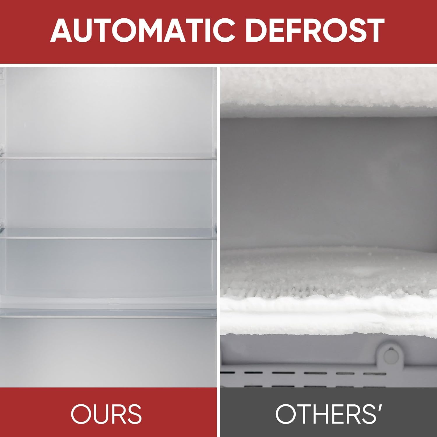 - Quiet & Energy-Efficient: Operating at a whisper-quiet 38 dB and equipped with automactic defrost technology, this mini fridge consumes just 258 kWh annually, delivering energy savings without compromising comfort. It's more economical for long-term use. Making it ideal for office, bedroom or dorm