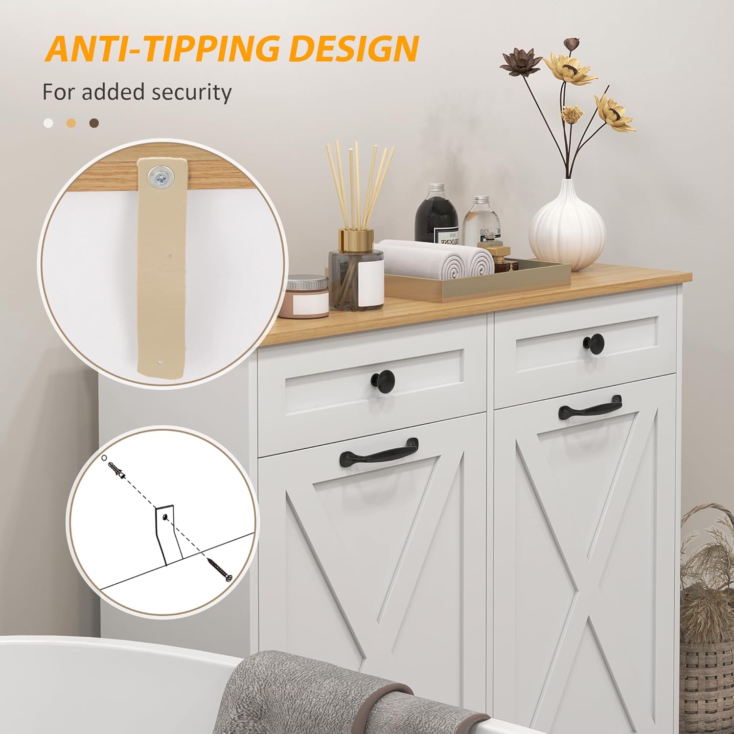 - Stable and Safe Construction: This standalone laundry storage cabinet includes an anti-topple design and offers the option to secure it to the wall, enhancing stability and safety