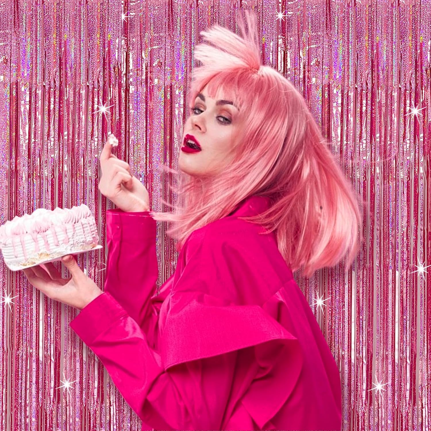 - Party Streamers Backdrop Material:This Pink foil curtain backdrop is made of tinsel.Metallic streamers are available in a variety of beautiful colors with a shiny and reflective surface that creates an eye-catching and mesmerizing effect. Unfold it and then enjoy your glittering party.