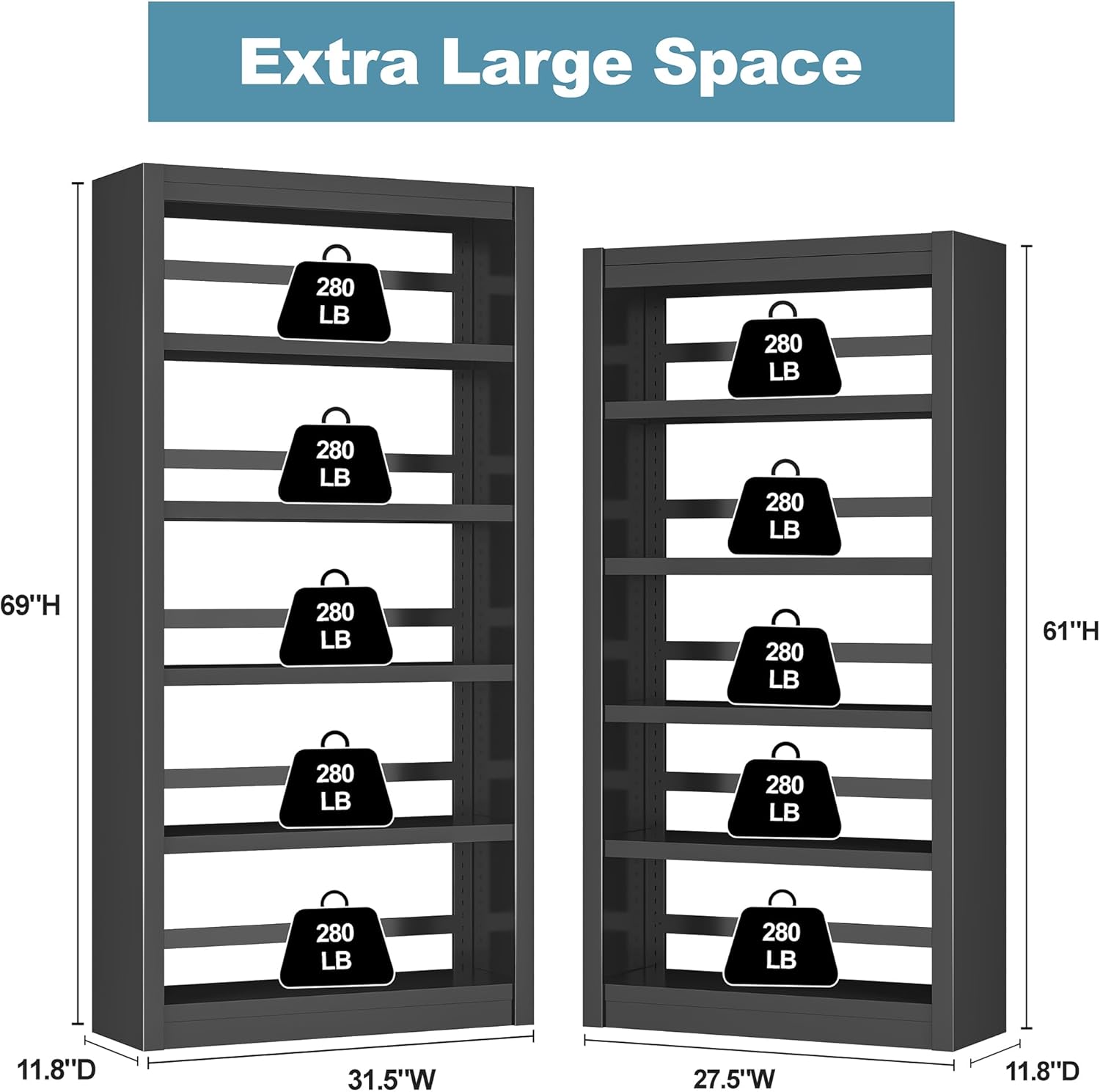 - ăSpacious Storage for Maximum SpaceăSize:69"H x 31.5"Wx 11.8"D. 5-tier tall bookshelf offers ample storage for books, files, and decor, making it a great choice for home office upgrade and space-saving furniture.