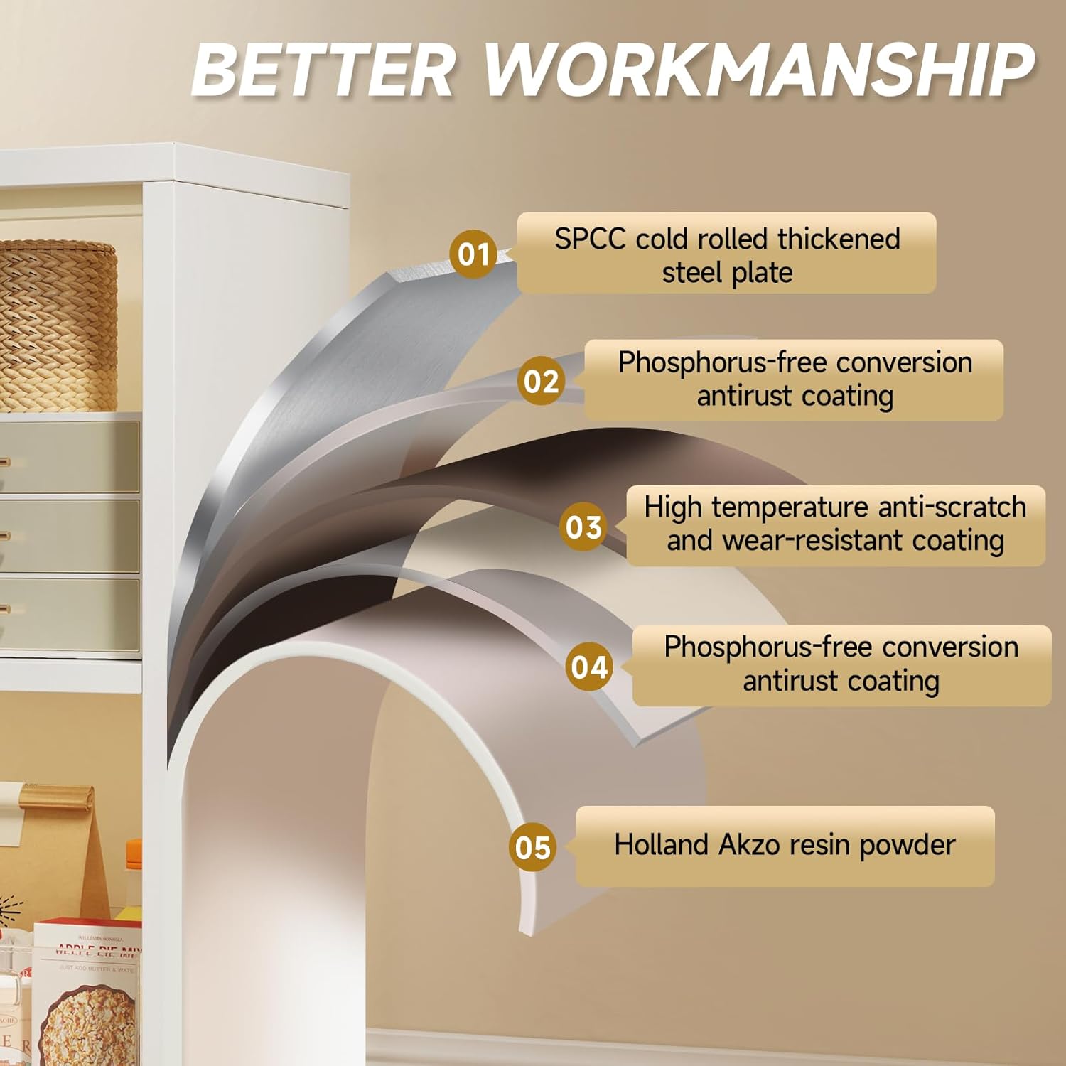 - Odor-Free & Durable Finish:Eco-friendly epoxy resin coating resists moisture, rust, and corrosion. Non-toxic, odor-free construction ensures safe use right out of the box