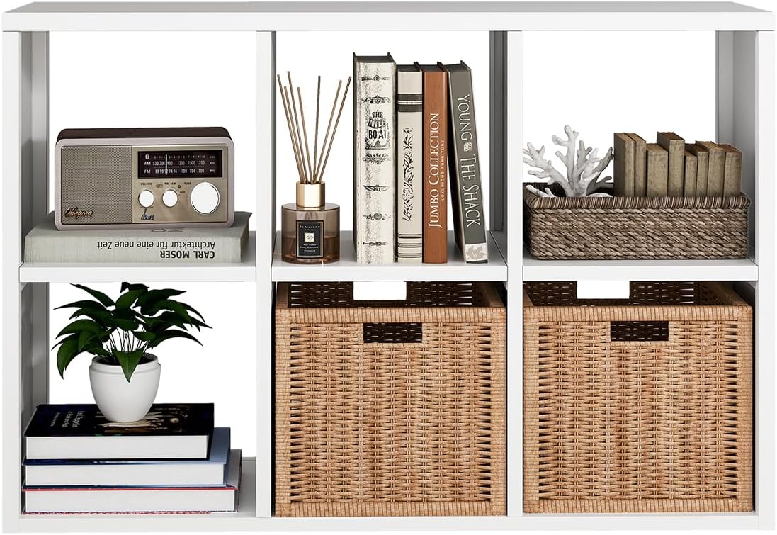6 Cube Storage Organizer, Black Bookshelf with Storage, 2 Tier Storage Cubes,Freestanding Storage Organizer with Shelves for Living Room, Study