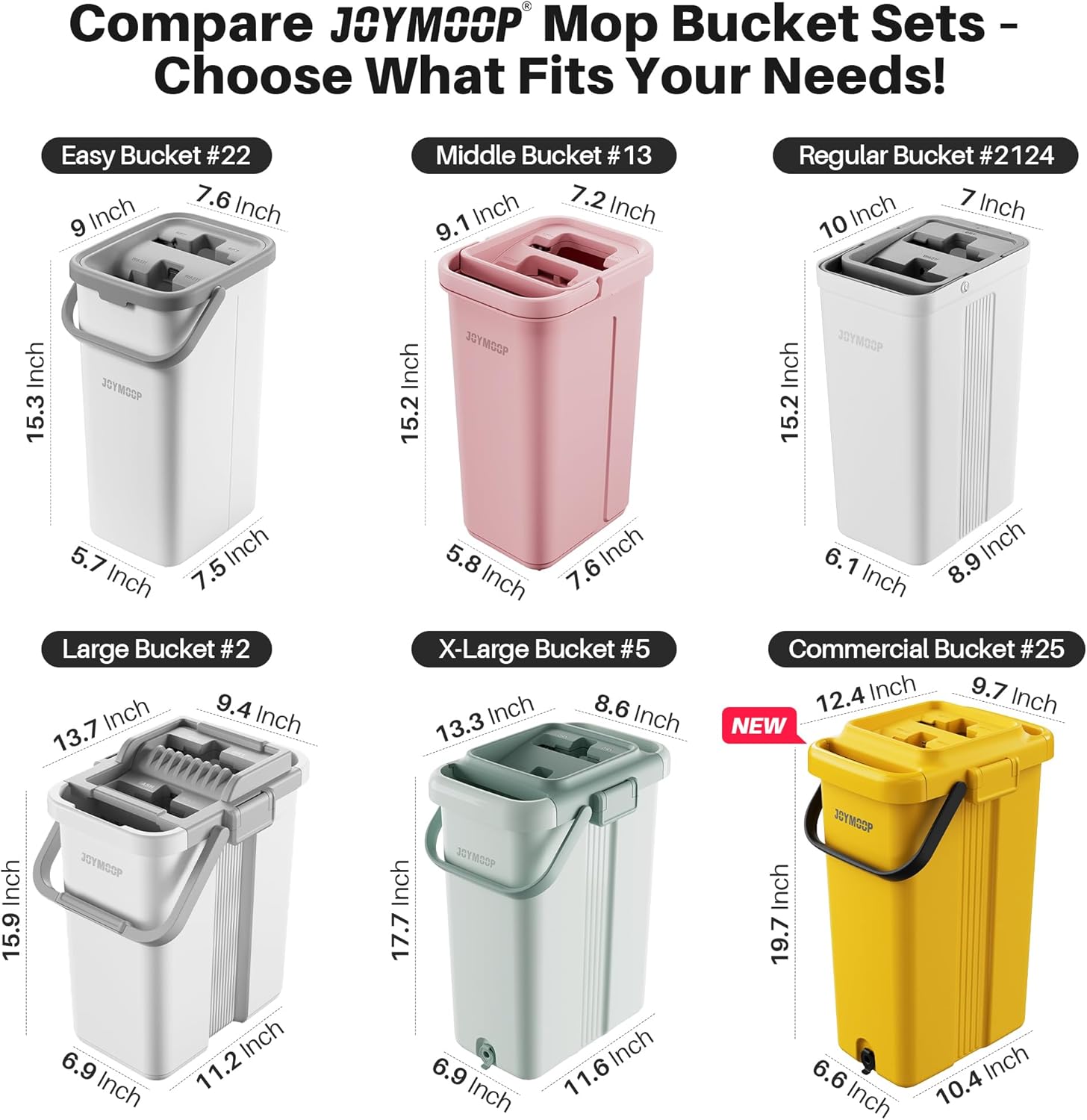 - [JOYMOOP Mop and Bucket Set for All Floors] The JOYMOOP mop and bucket set offers an efficient and easy solution for cleaning all types of floors. The flat mop design allows for easy maneuvering around corners and tight spaces, while the included microfiber cloth provides superior water absorption for a streak-free finish. Ideal for hardwood, tile, and vinyl floors, this set helps you achieve a clean home with minimal effort
