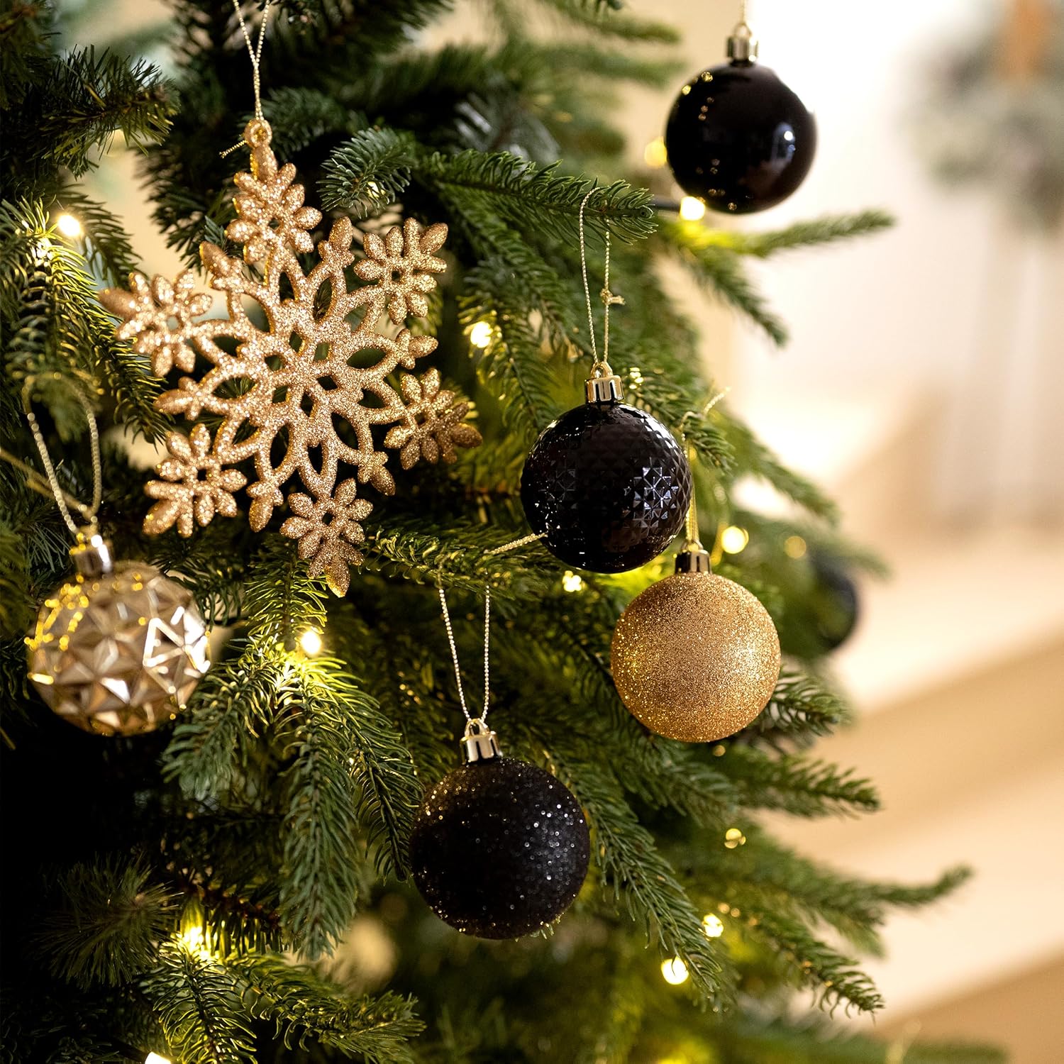 Valery Madelyn Christmas Tree Decorations Ornament Set for Fall Halloween, 50ct 2 Inches Black and Gold Shatterproof Christmas Ball Ornaments Hanging Xmas Holiday Party Decor