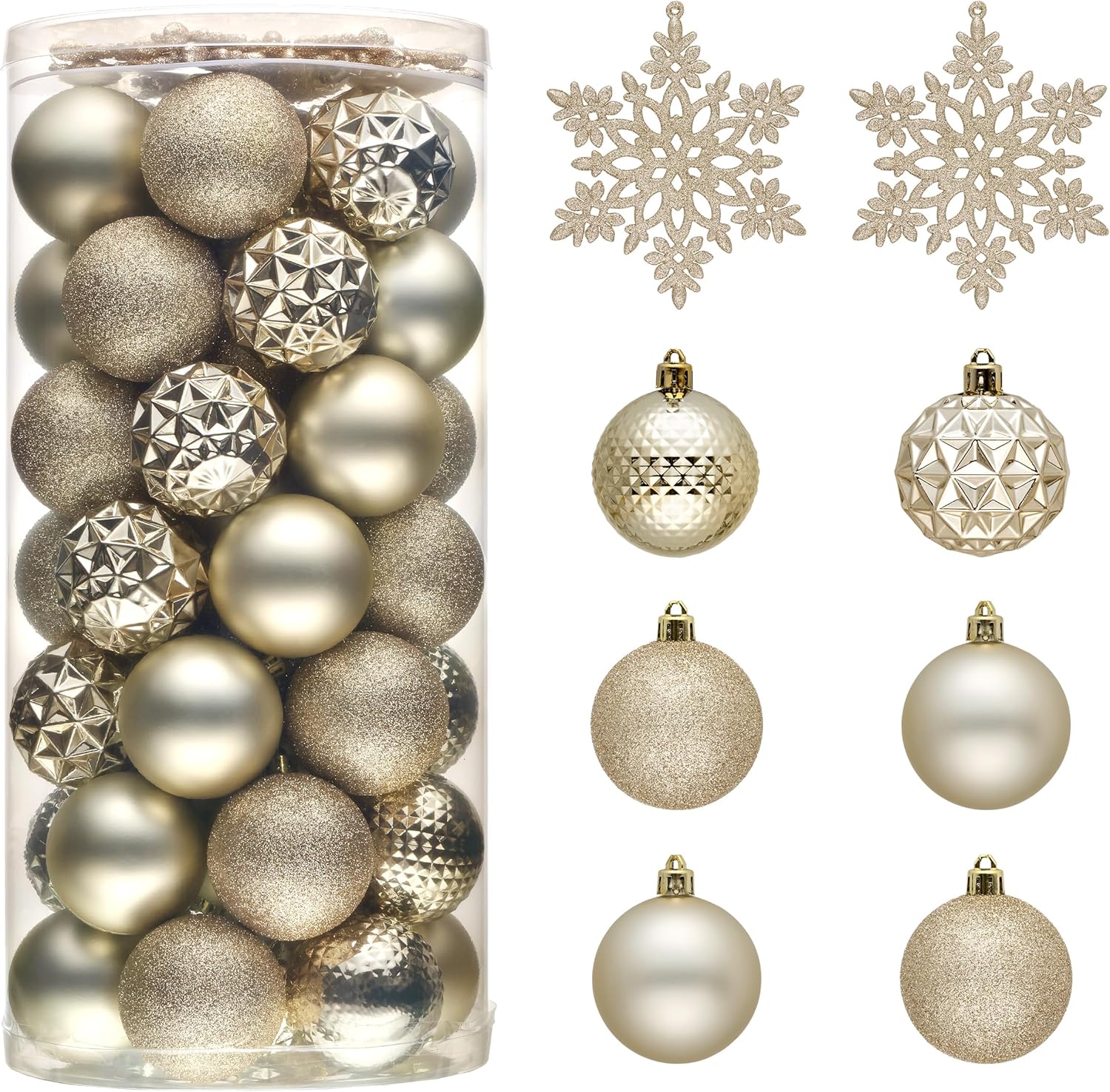 - 【Package and Size】This ornament ball set include 50pcs Christmas ornaments measuring 2 inches in diameter, featuring seamless connections for a polished look