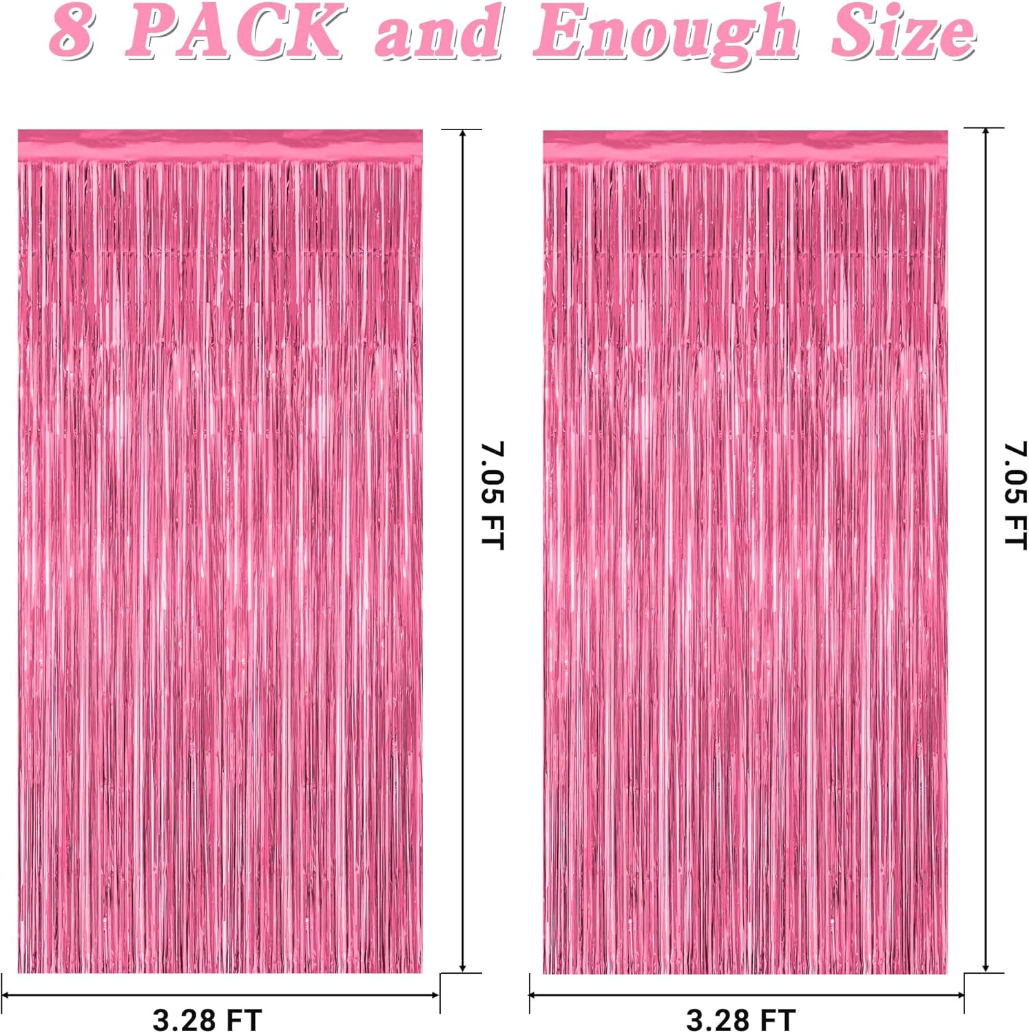 8 Pack Pink Backdrop, 3.28 FT x 7.05 FT Pink Birthday Decorations, Metallic Pink Backdrop for Photoshoot Foil Curtains Party Streamer, Bachelorette Decorations Birthday Photo Booth Props